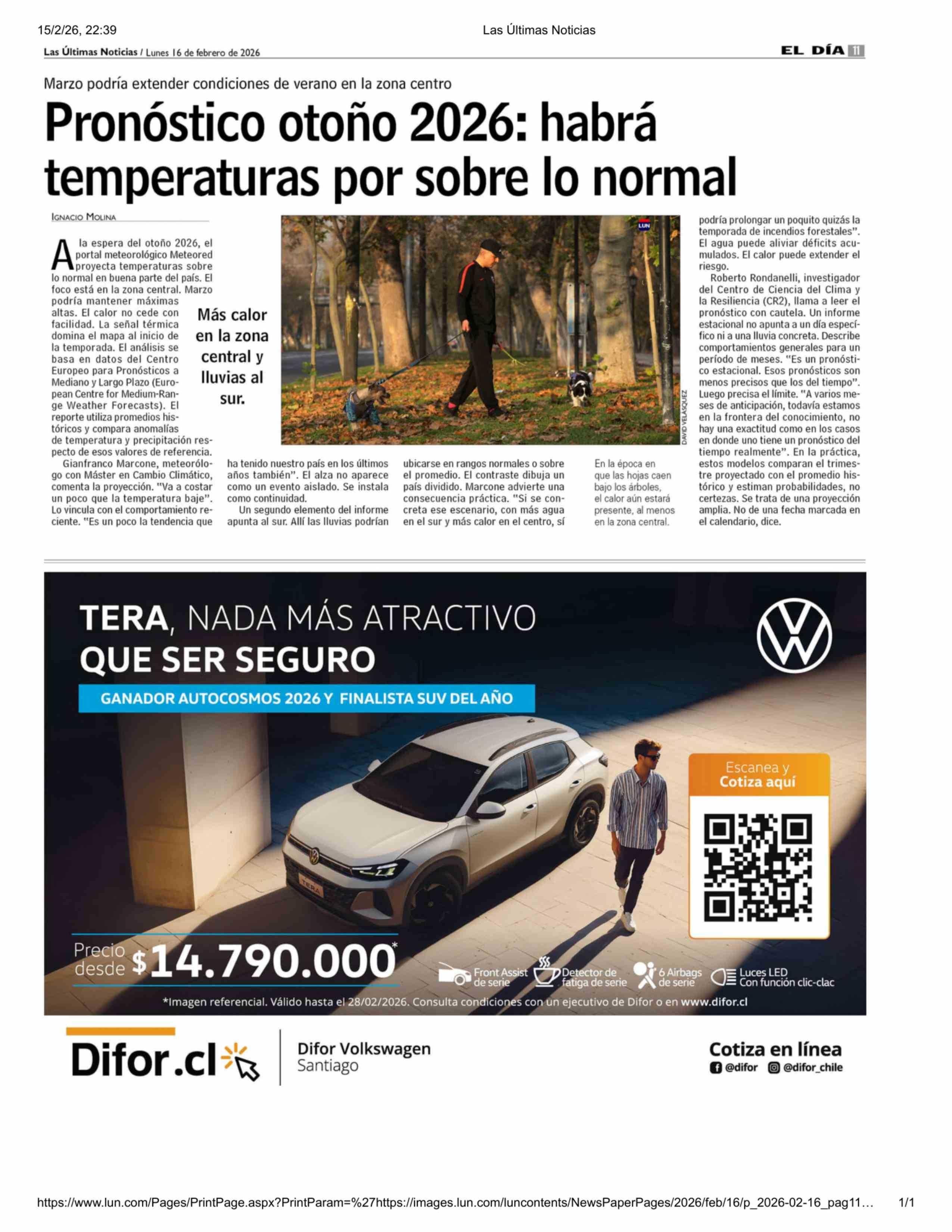 Título: Pronóstico otoño 2026: habrá temperaturas por sobre lo normal