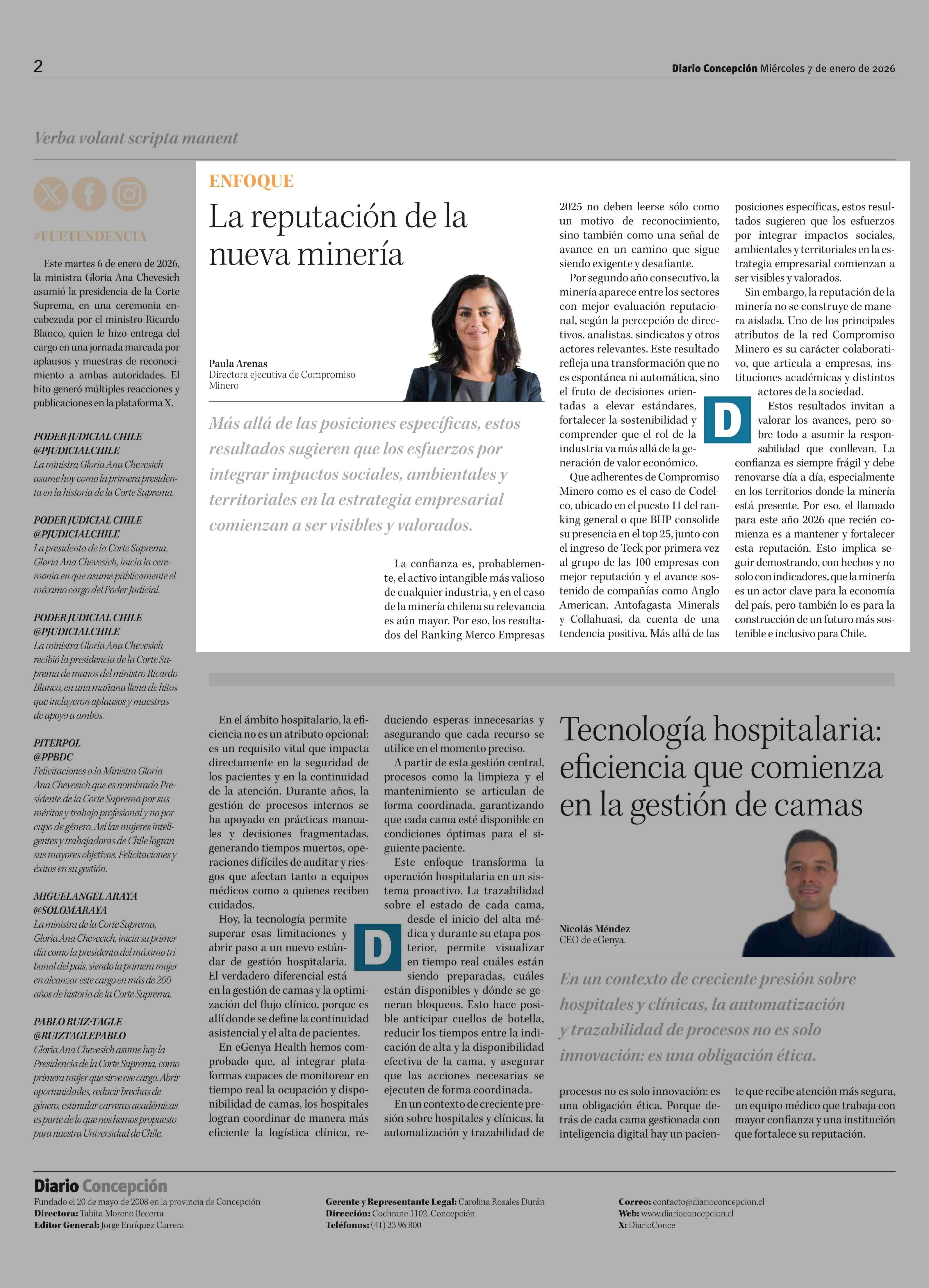 Columnas de Opinión: La reputación de la nueva minería 07-01-2026 Diario Concepción |
