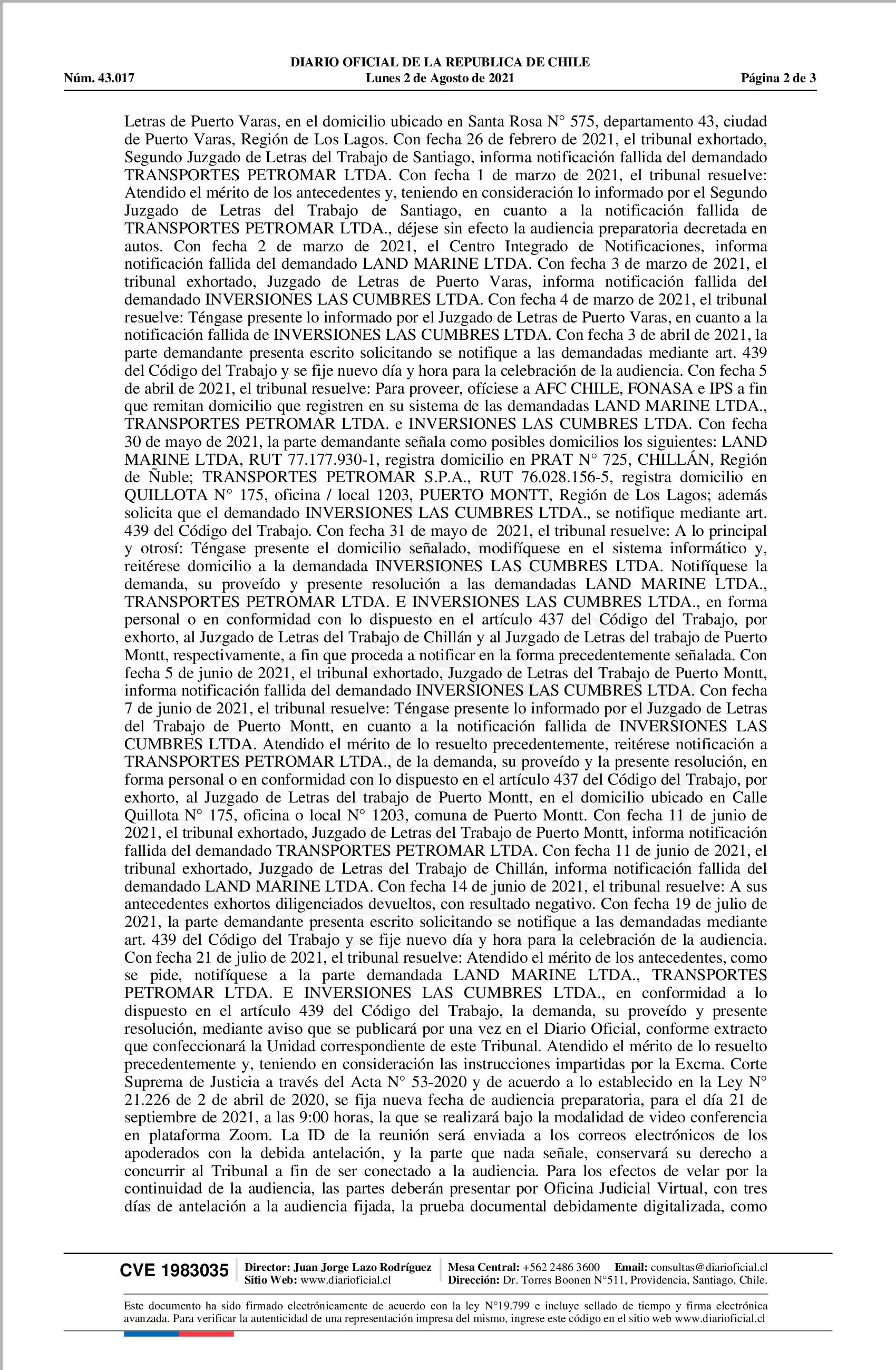 Notificación 02-08-2021 Diario Oficial Edición Electrónica |