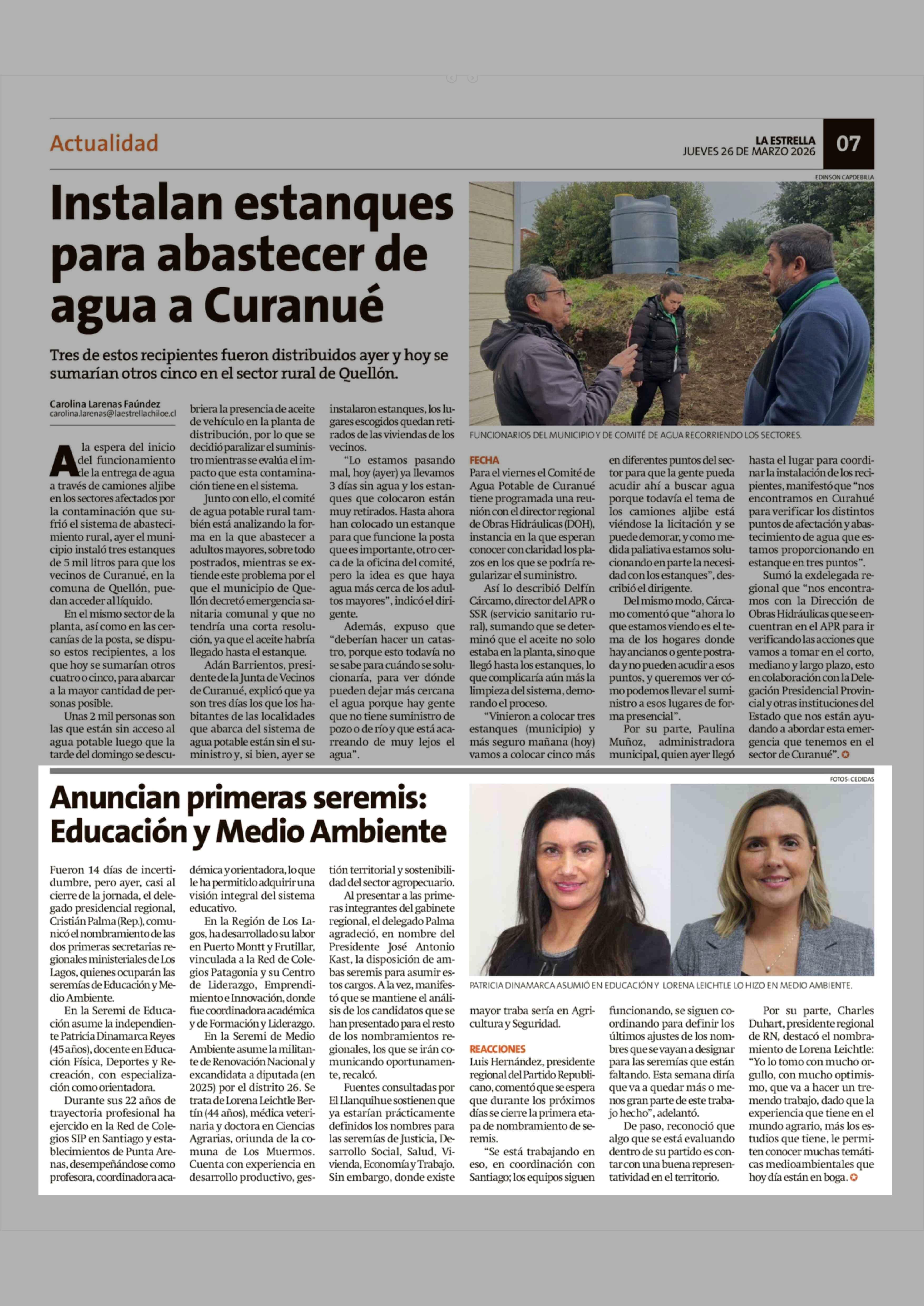 Anuncian primeras seremis: Educación y Medio Ambiente 26-03-2026 La Estrella de Chiloé |