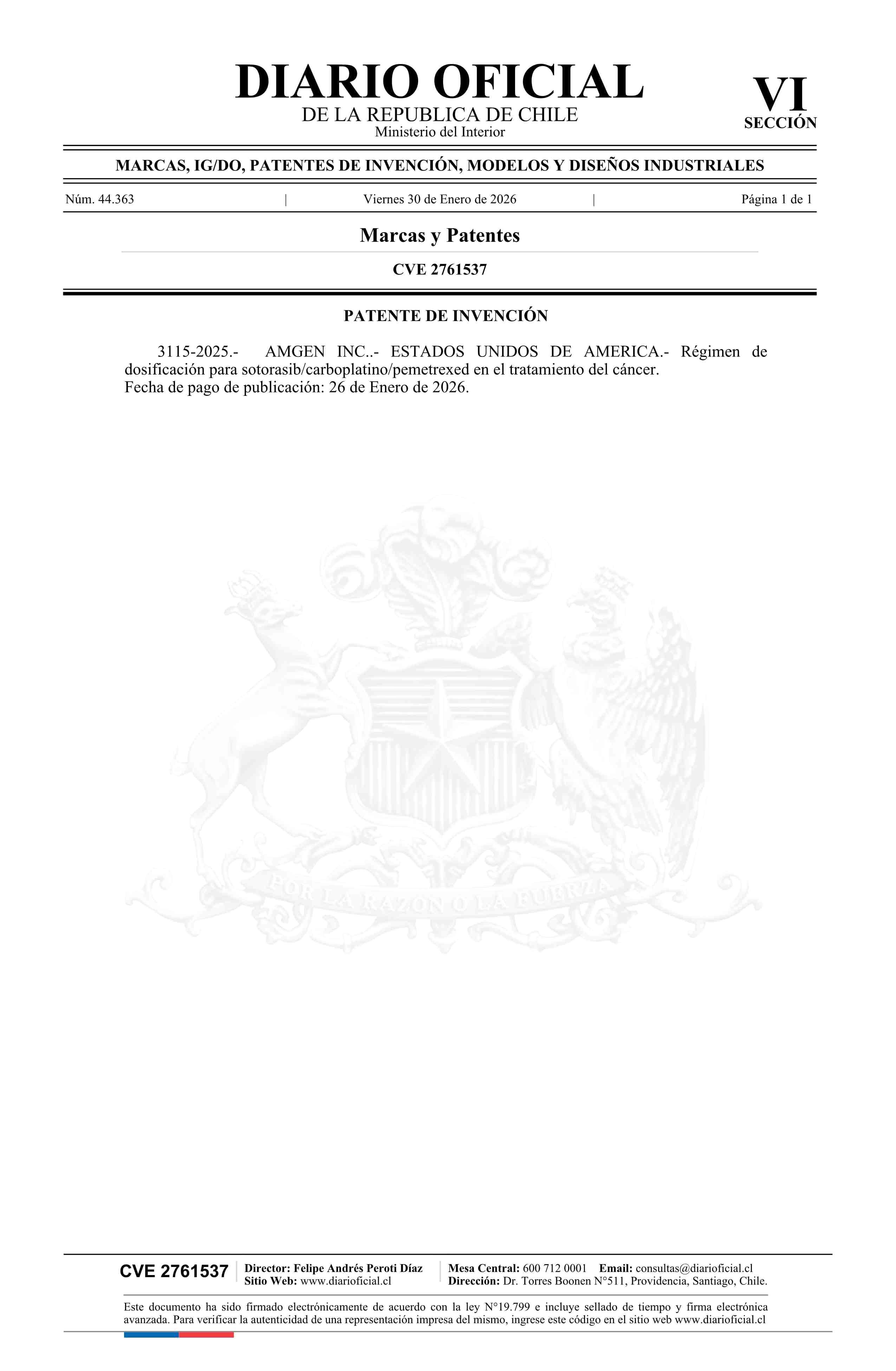 Solicitud número 3115-2025.- AMGEN INC. 30-01-2026 Diario Oficial Edición Electrónica |