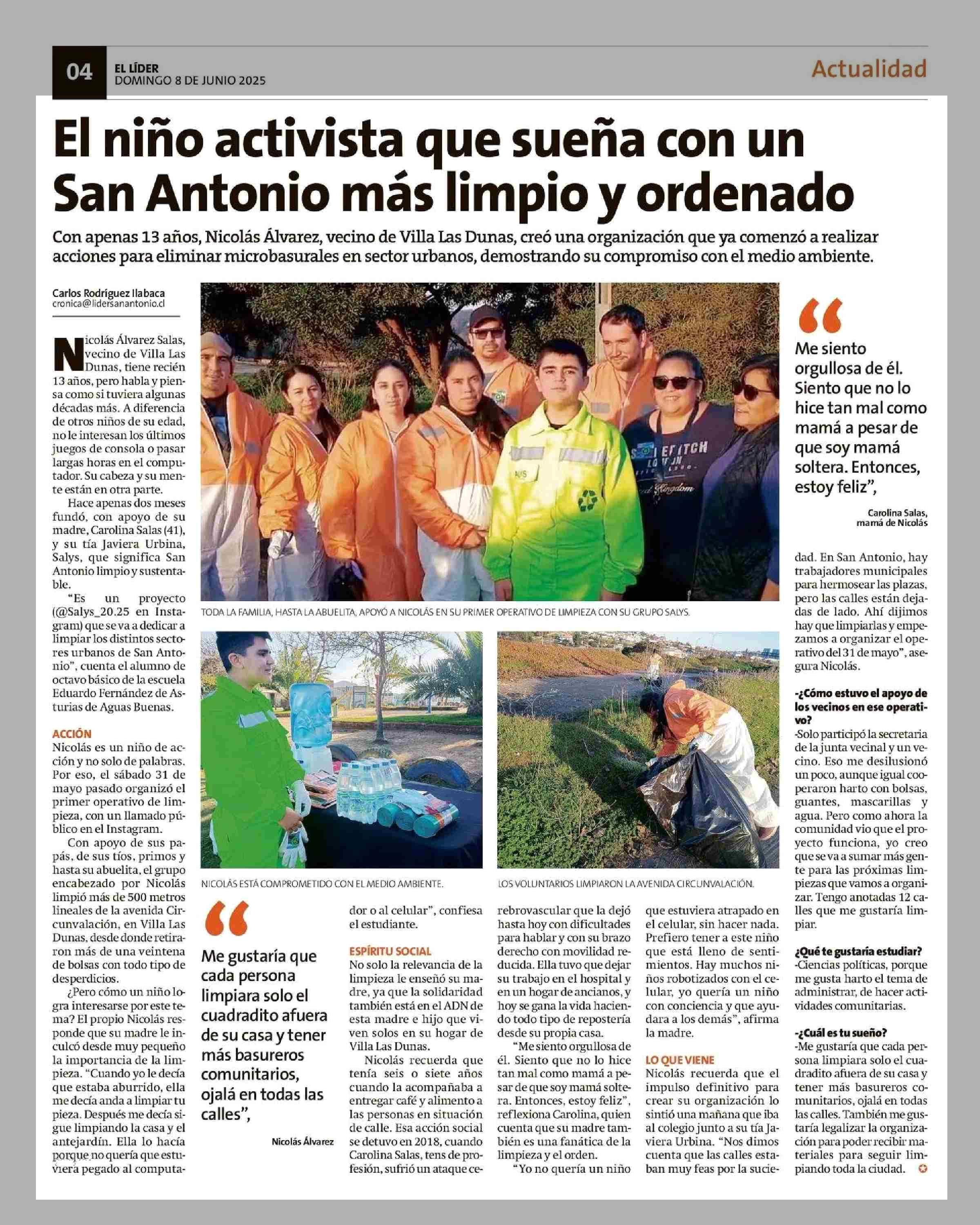 El niño activista que sueña con un San Antonio más limpio y ordenado 08-06-2025 El Líder |