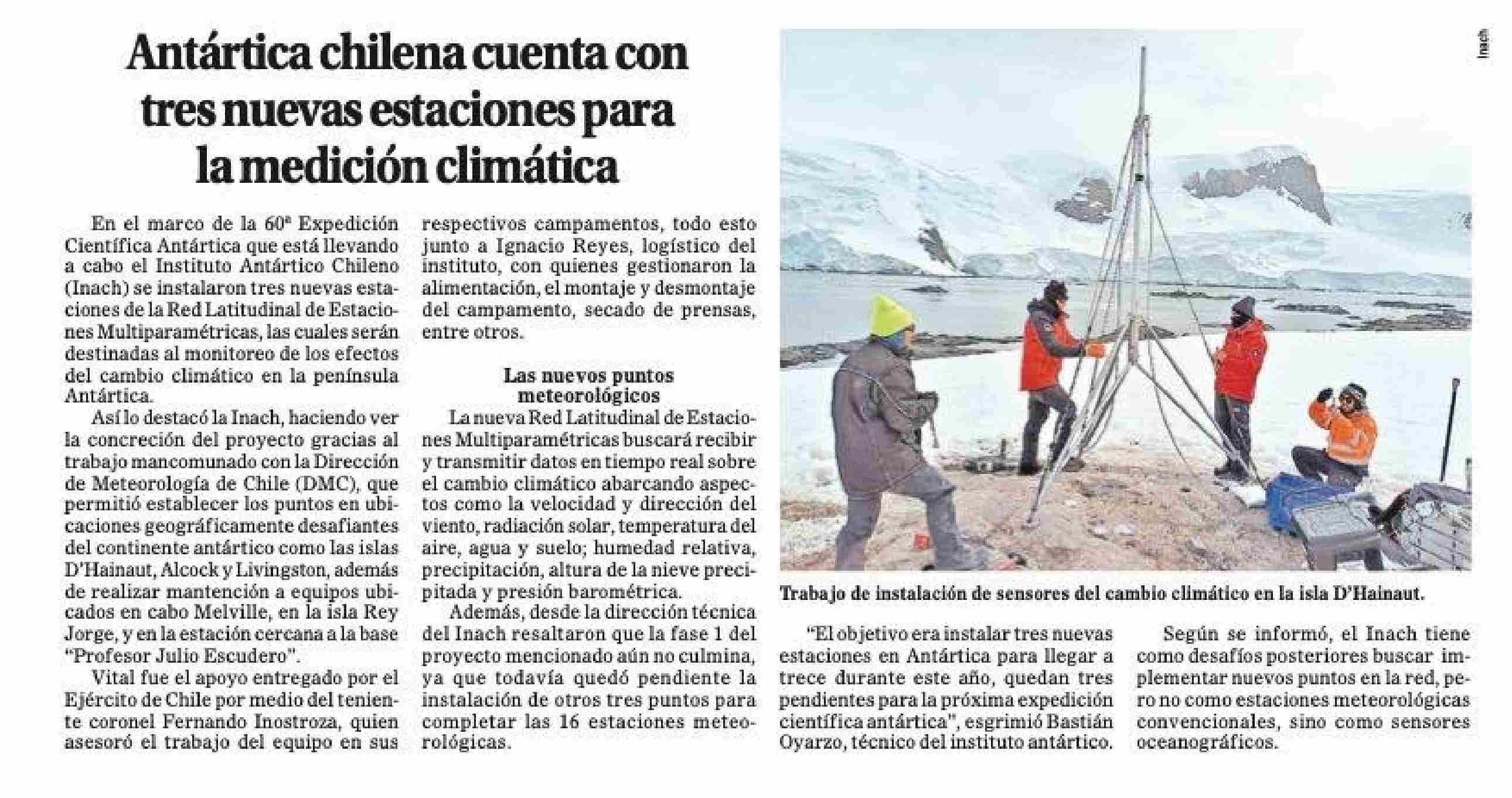 Antártica chilena cuenta con tres nuevas estaciones para la medición climática 18-02-2024 El Magallanes |