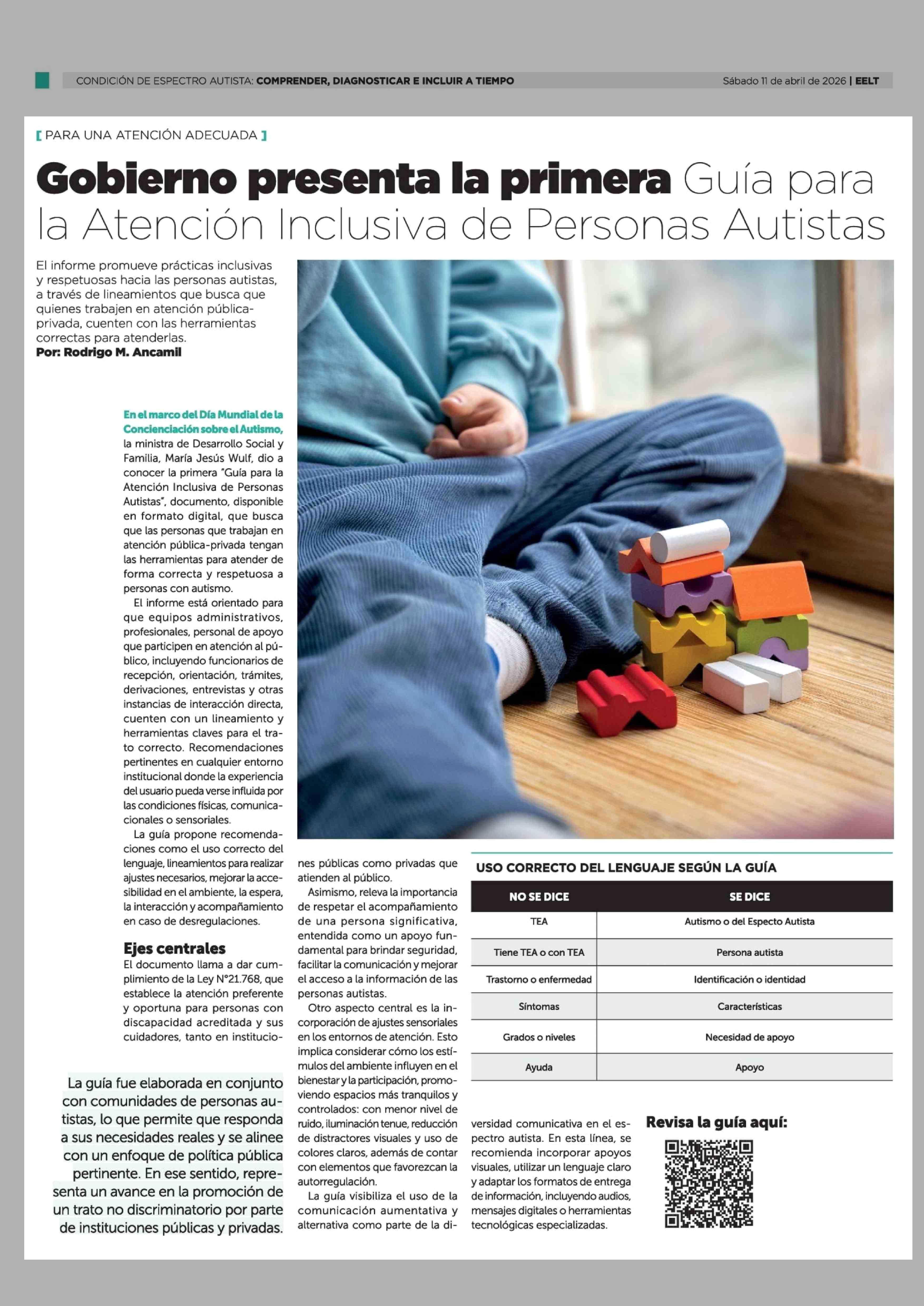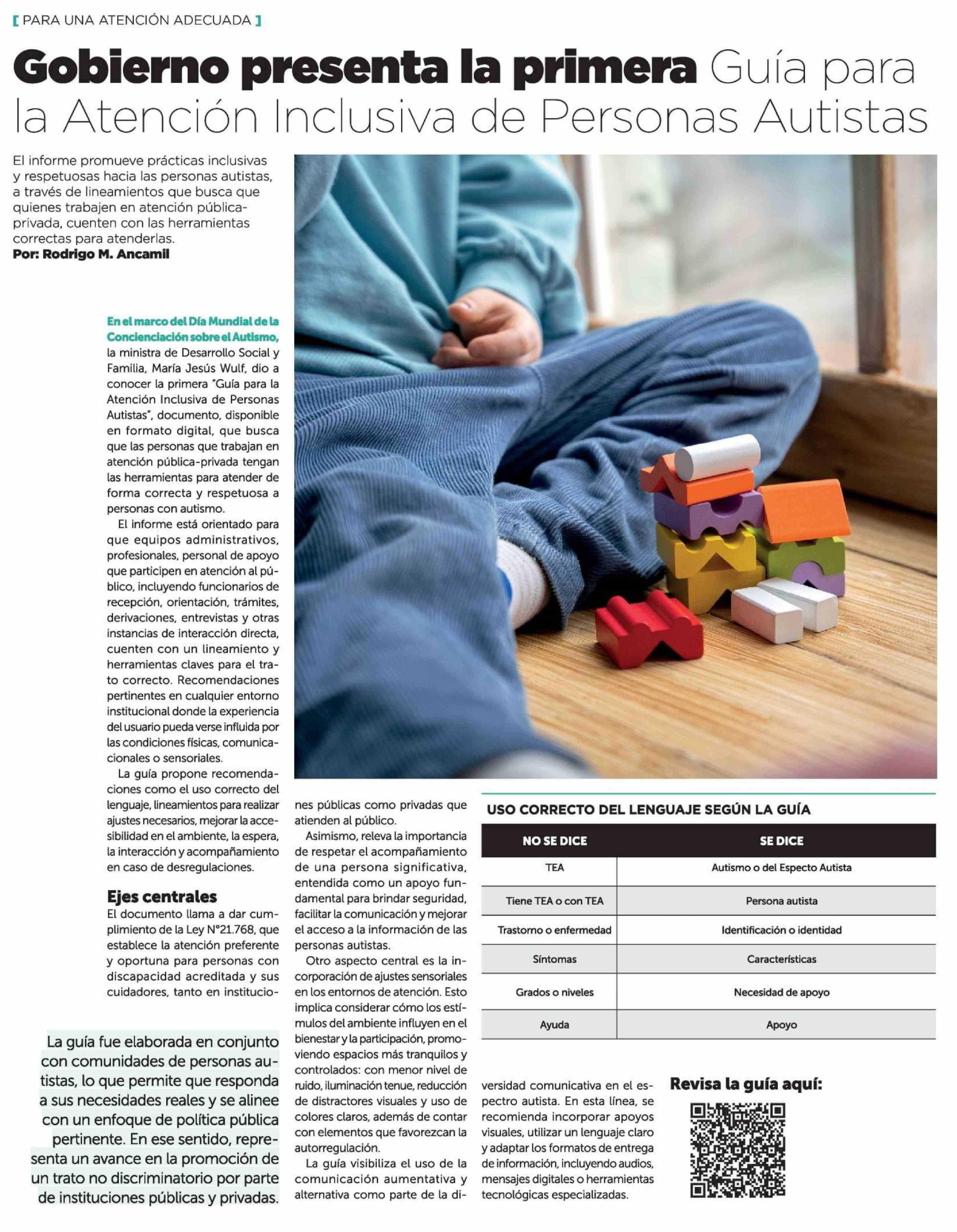 Gobierno presenta la primera Guía para la Atención Inclusiva de Personas Autistas 11-04-2026 La Tercera |