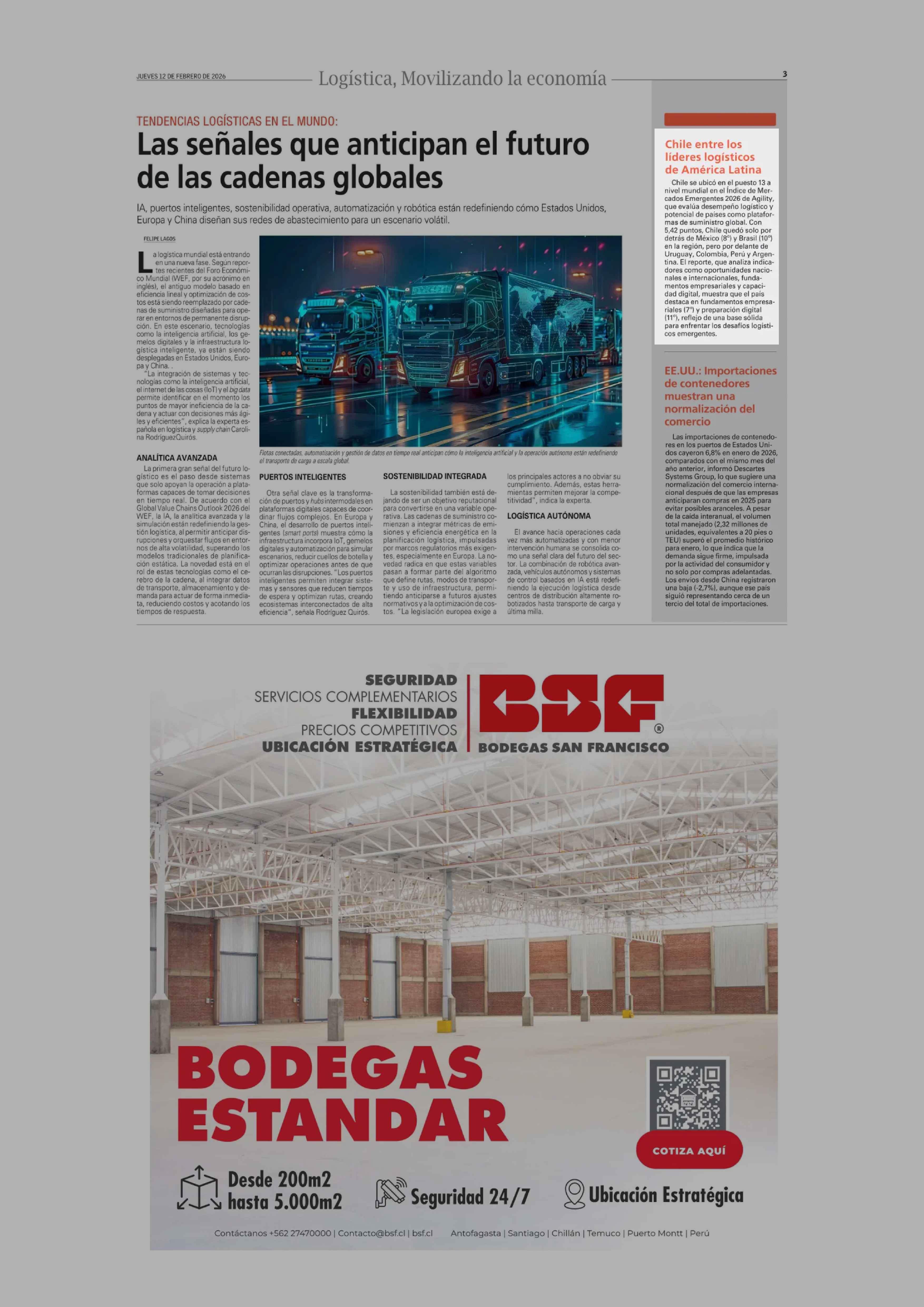 Chile entre los líderes logísticos de América Latina 12-02-2026 El Mercurio |