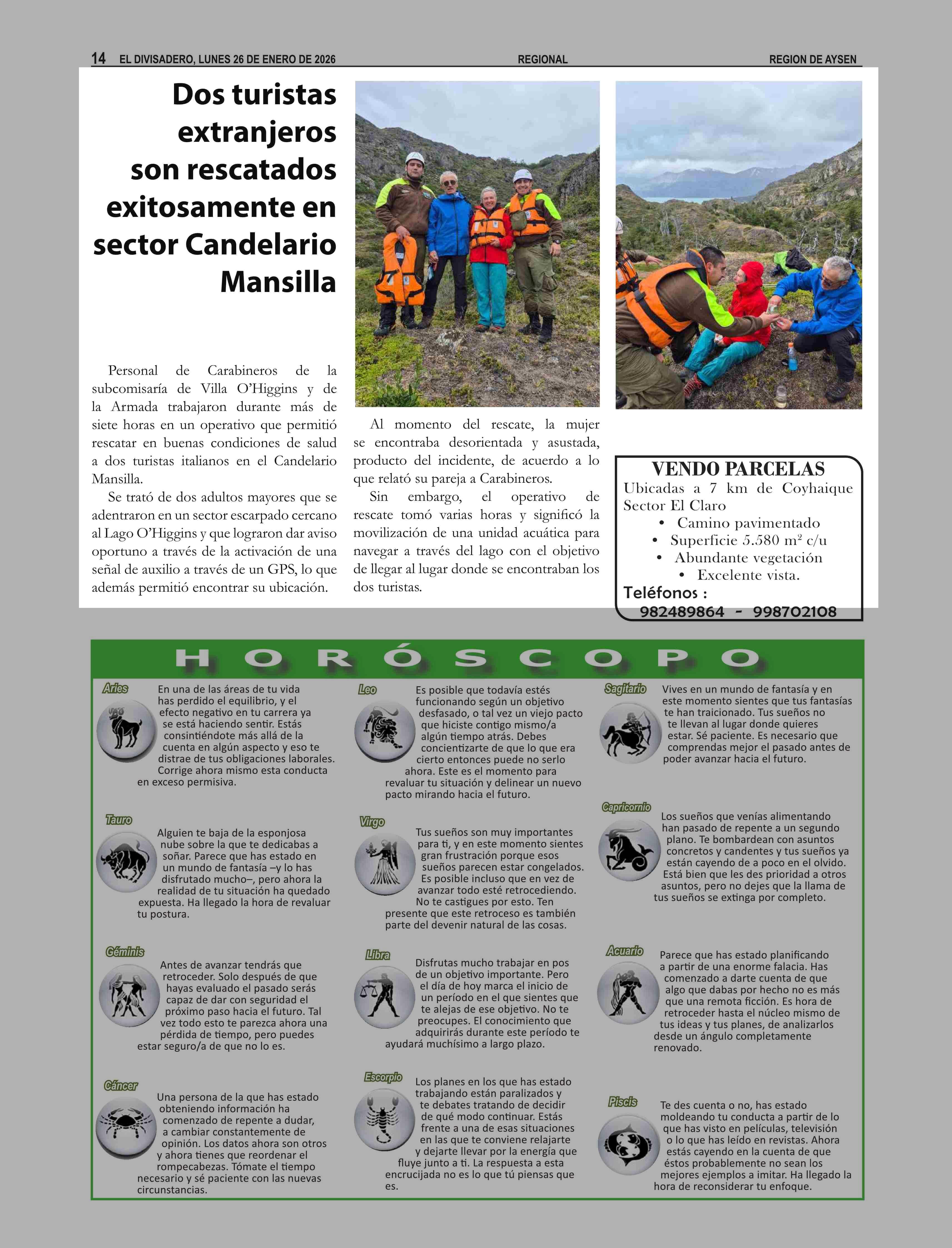 | Fecha: | 26-01-2026 | Sector: | Noticia general | Región: | Región Aysén del General Carlos Ibáñez del Campo |