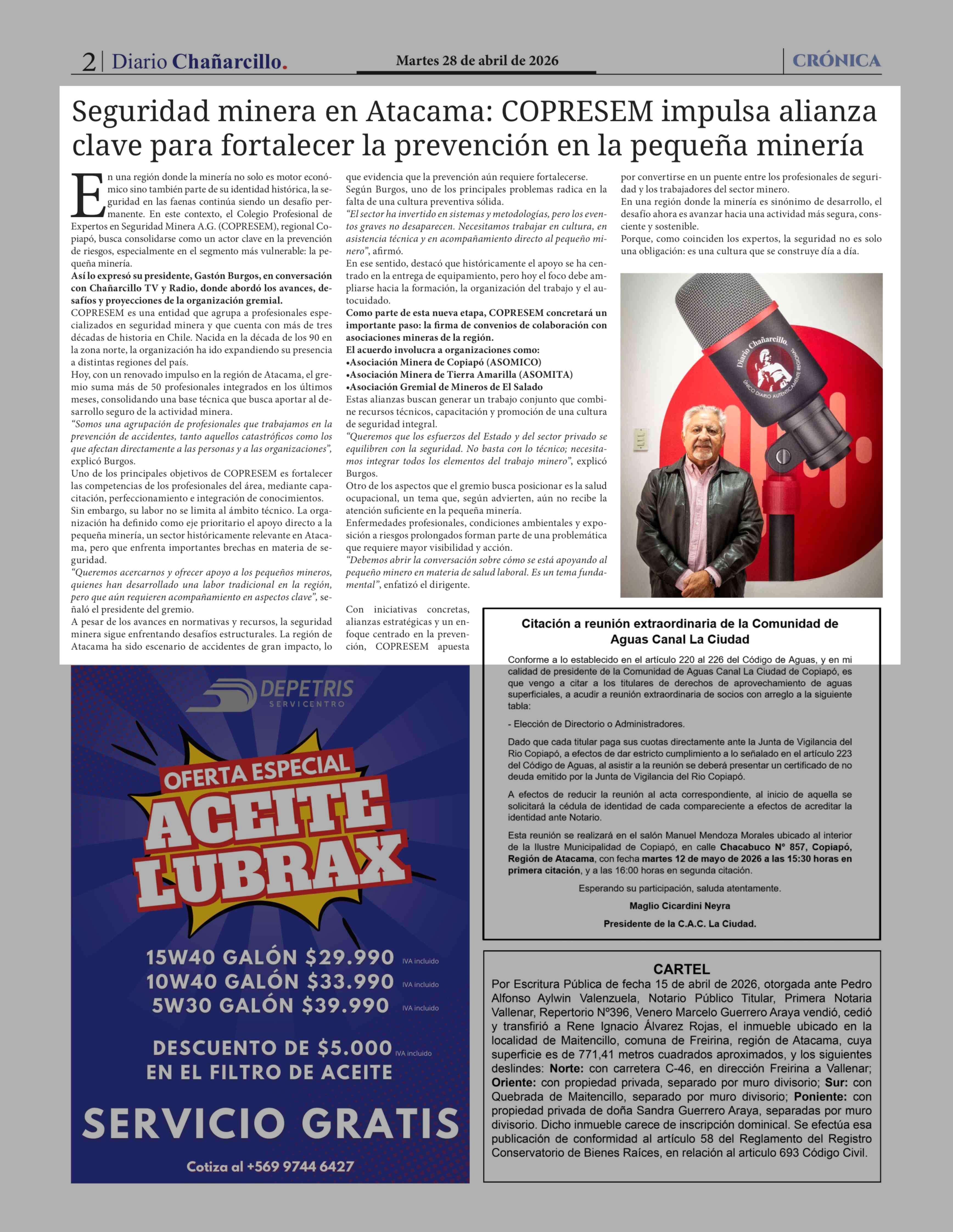 | Fecha: | 28-04-2026 | Sector: | Noticia general | Región: | Región de Atacama |