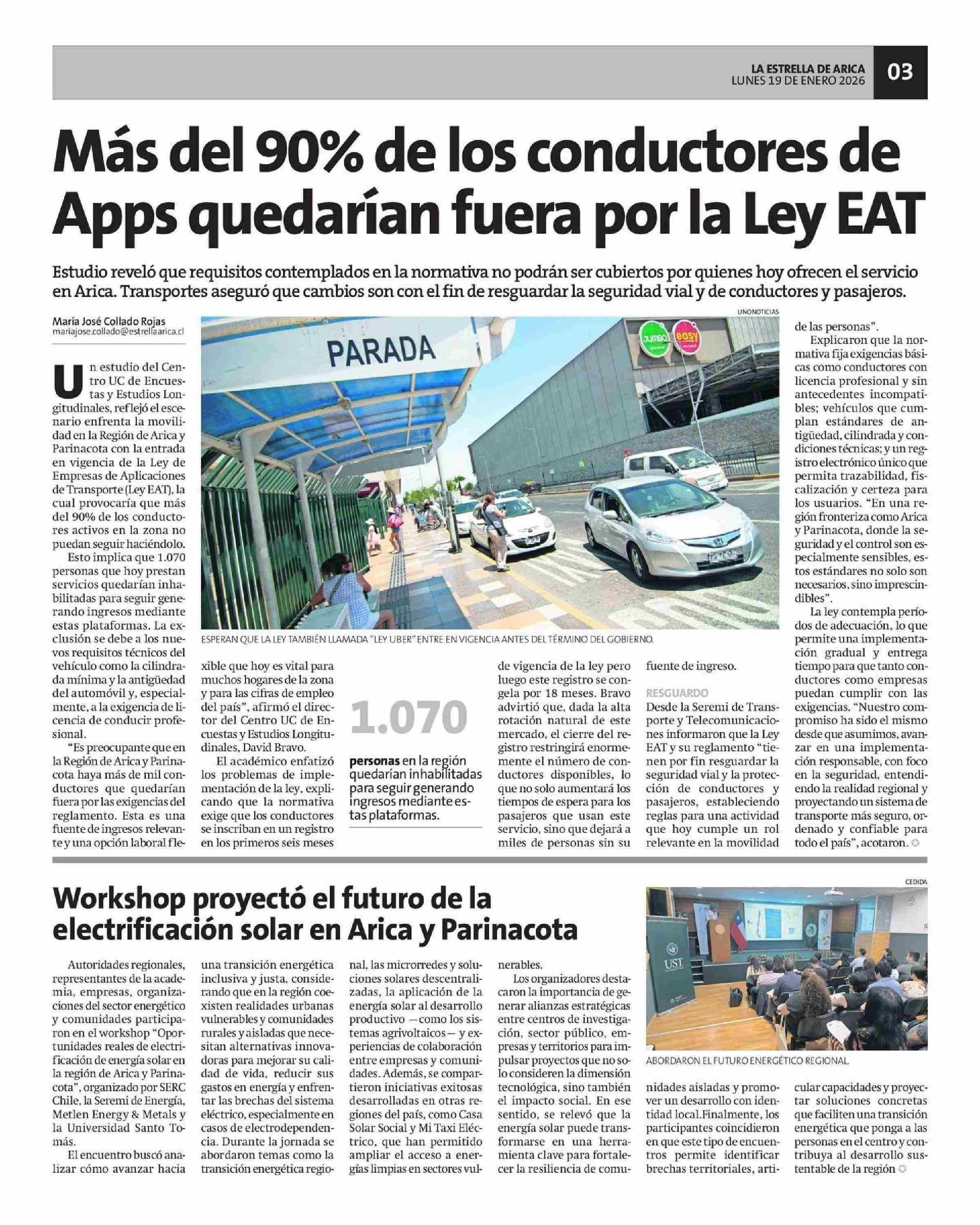 Workshop proyecto el futuro de la electrificación solar en Arica y Parinacota 19-01-2026 La Estrella de Arica |