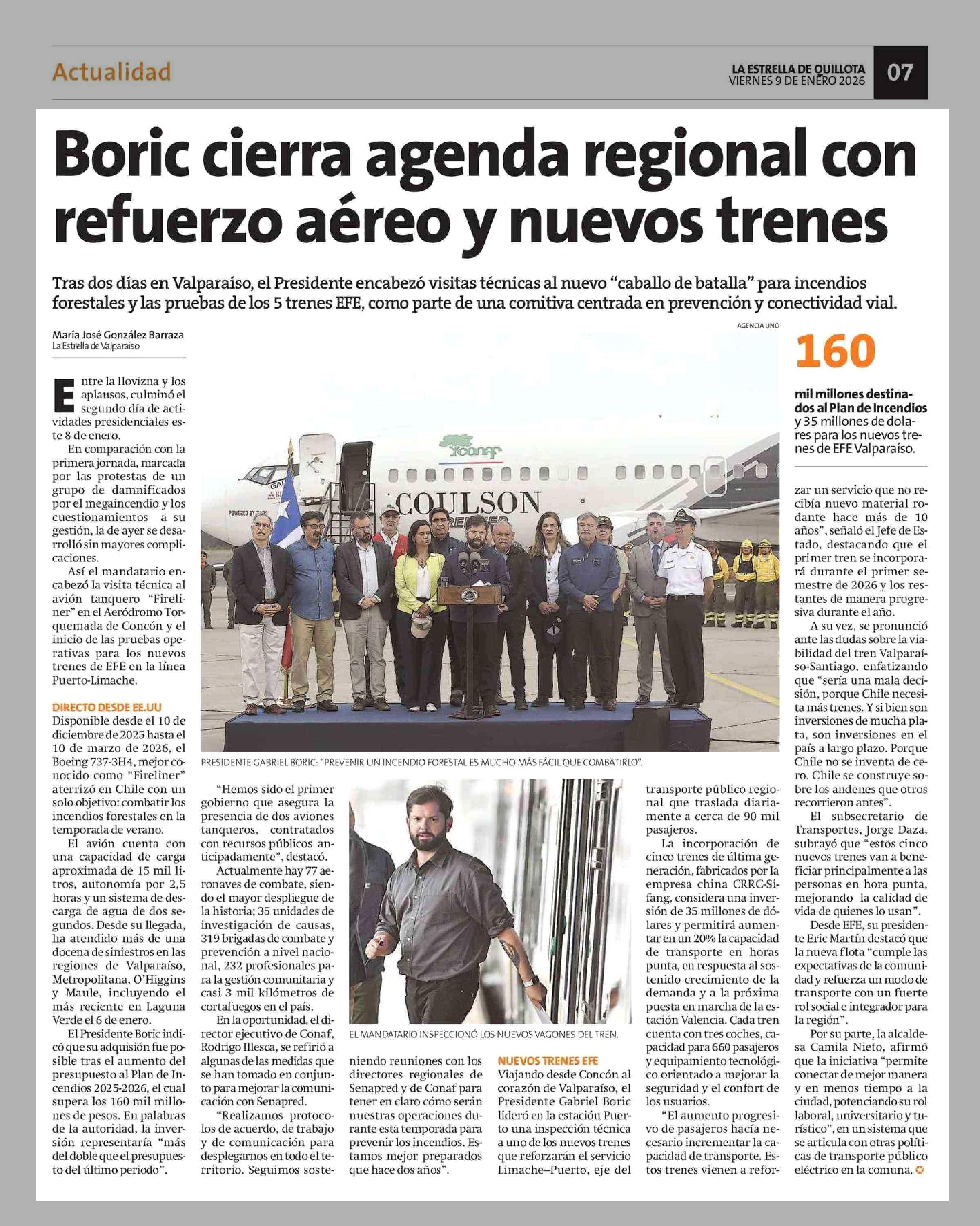 Título: Boric cierra agenda regional con refuerzo aéreo y nuevos trenes