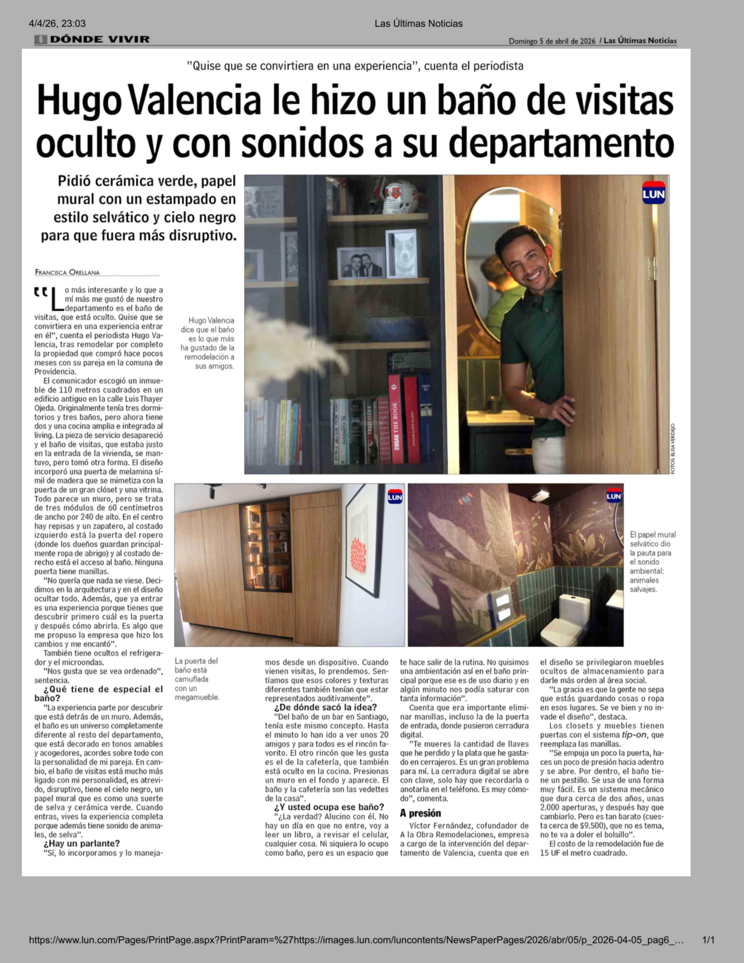 Hugo Valencia le hizo un baño de visitas oculto y con sonidos a su departamento 05-04-2026 Las Últimas Noticias |