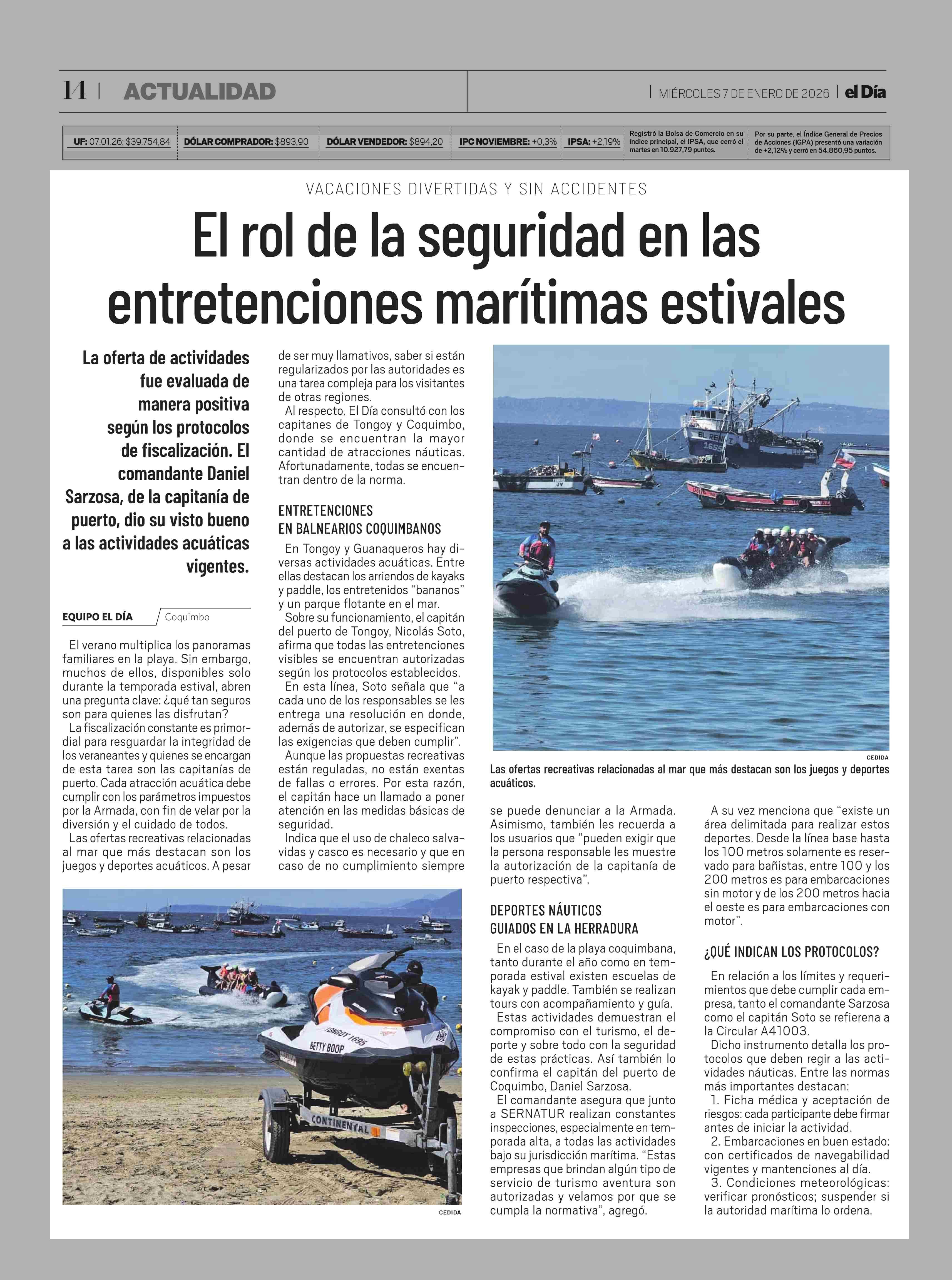 El rol de la seguridad en las entretenciones marítimas estivales 07-01-2026 El Día |