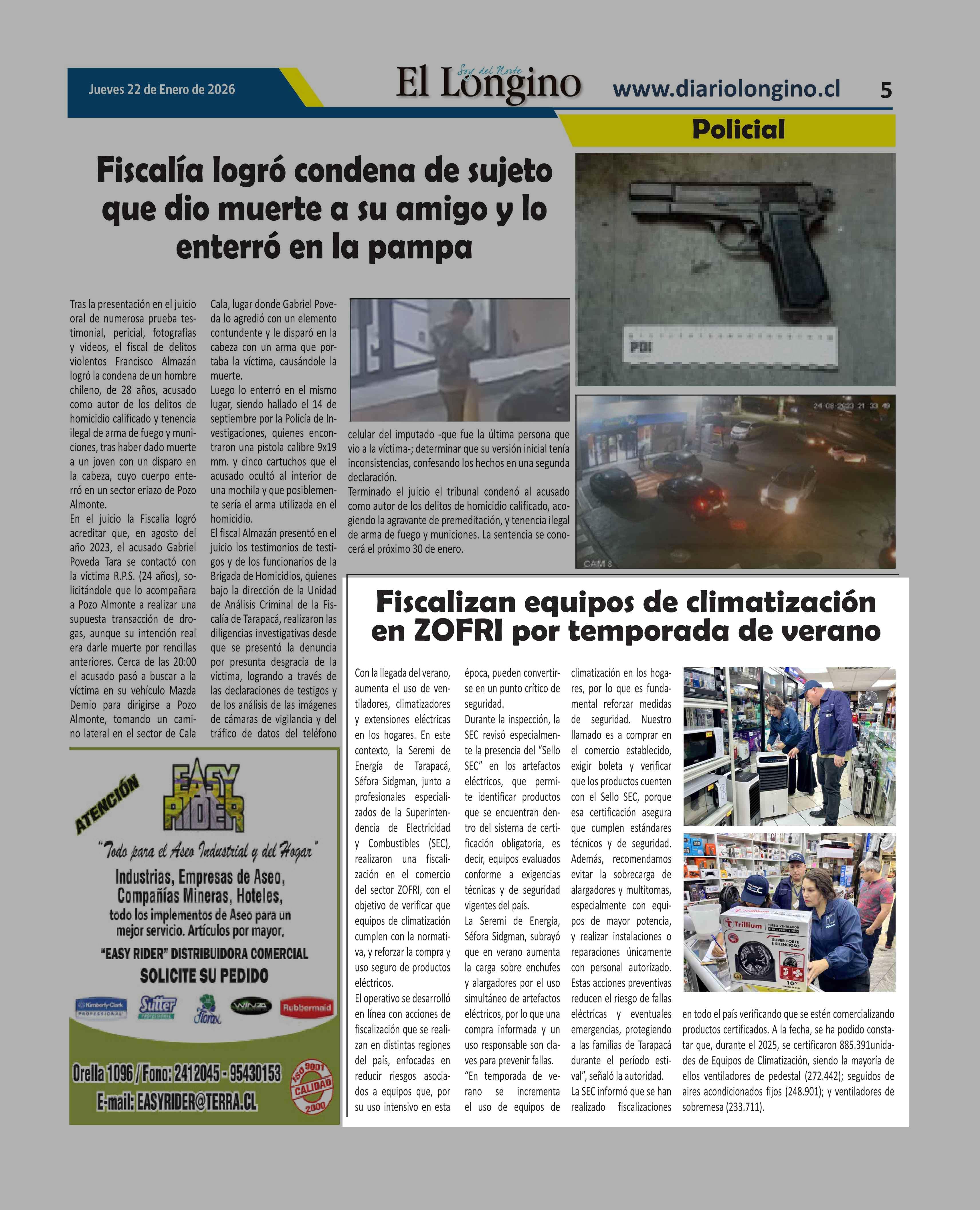 | Fecha: | 22-01-2026 | Sector: | Noticia general | Región: | Región de Tarapacá |