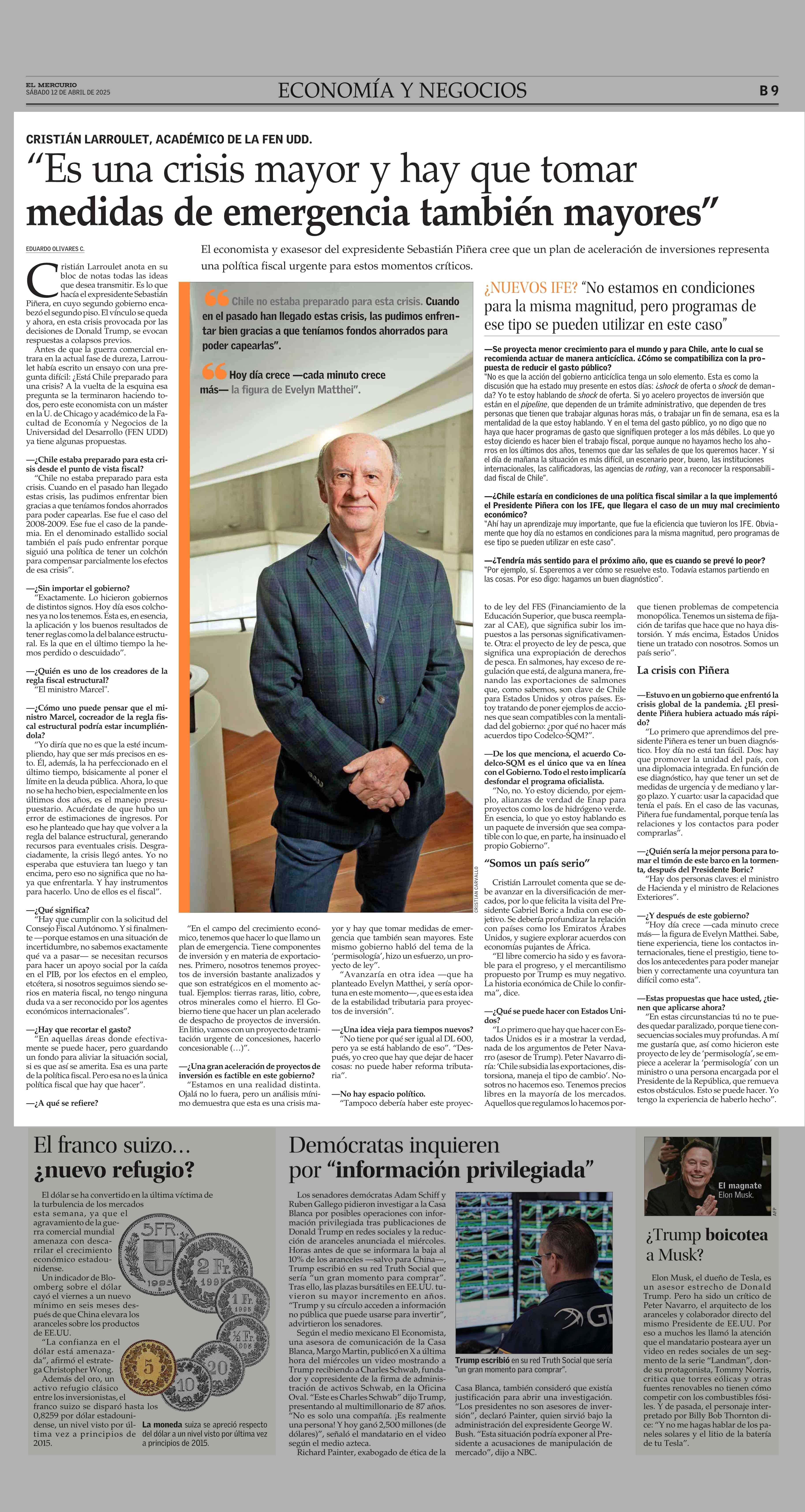 "Es una crisis mayor y hay que tomar medidas de emergencia también mayores" 12-04-2025 El Mercurio |