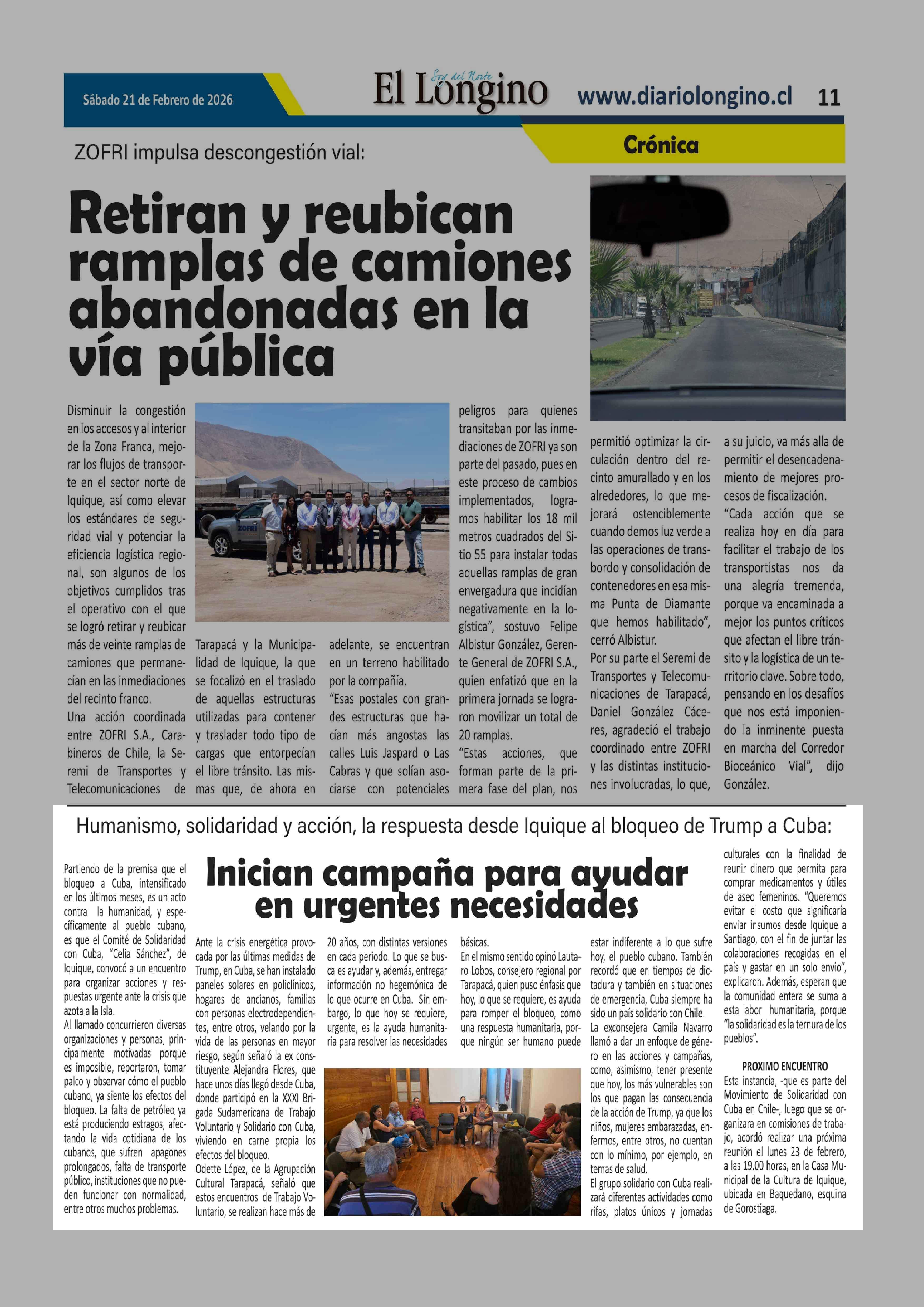 | Fecha: | 21-02-2026 | Sector: | Noticia general | Región: | Región de Tarapacá |