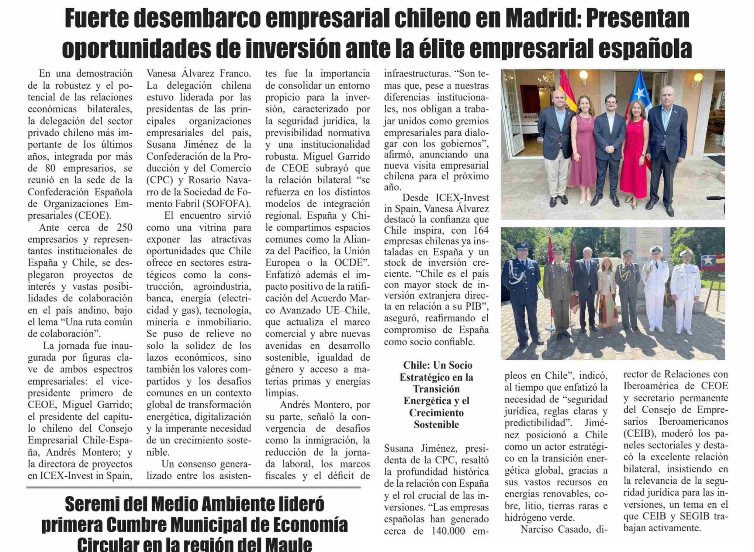 | Título: | Fuerte desembarco empresarial chileno en Madrid: Presentan oportunidades de inversión ante la élite empresarial española |