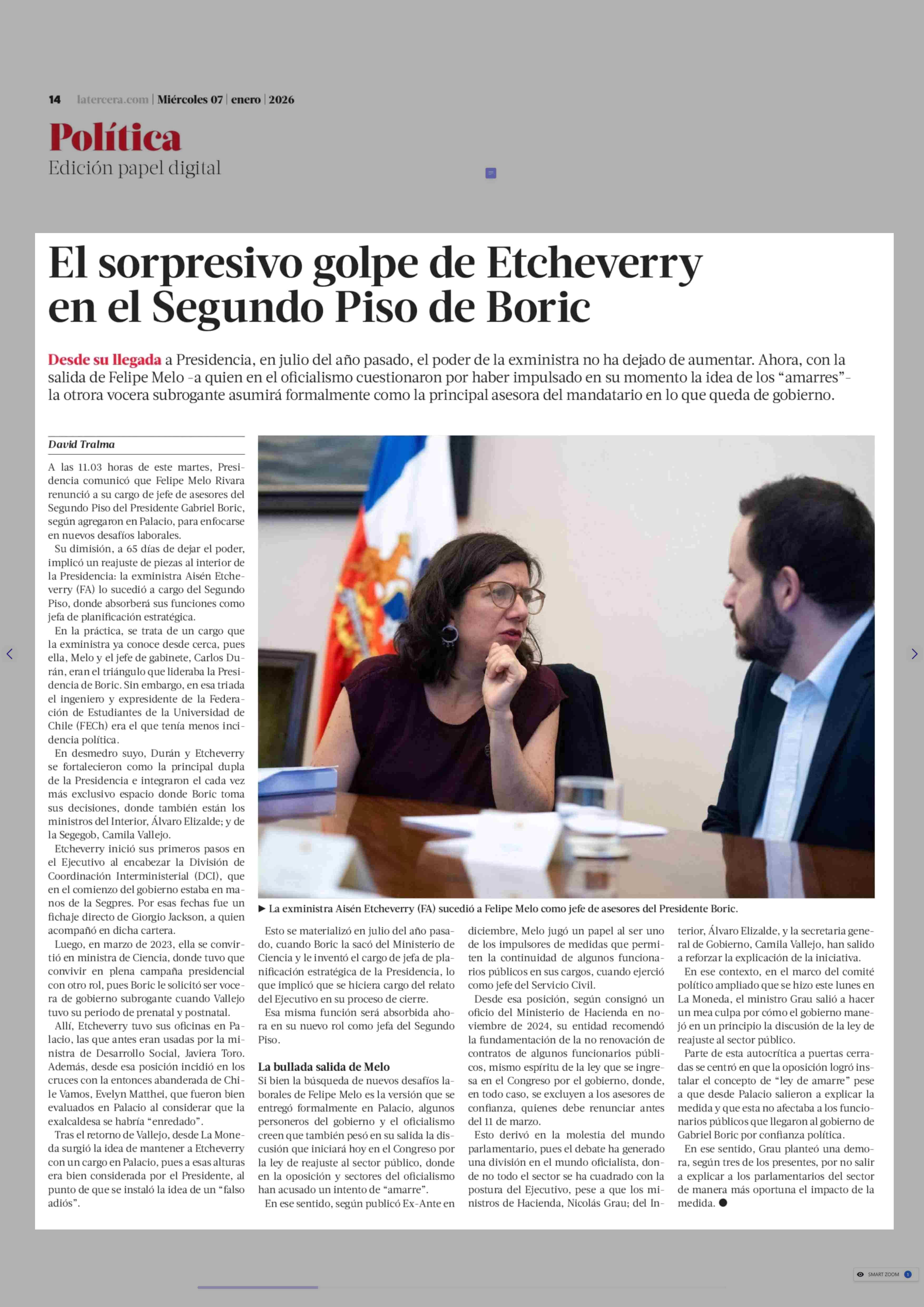 El sorpresivo golpe de Etcheverry en el Segundo Piso de Boric 07-01-2026 La Tercera |
