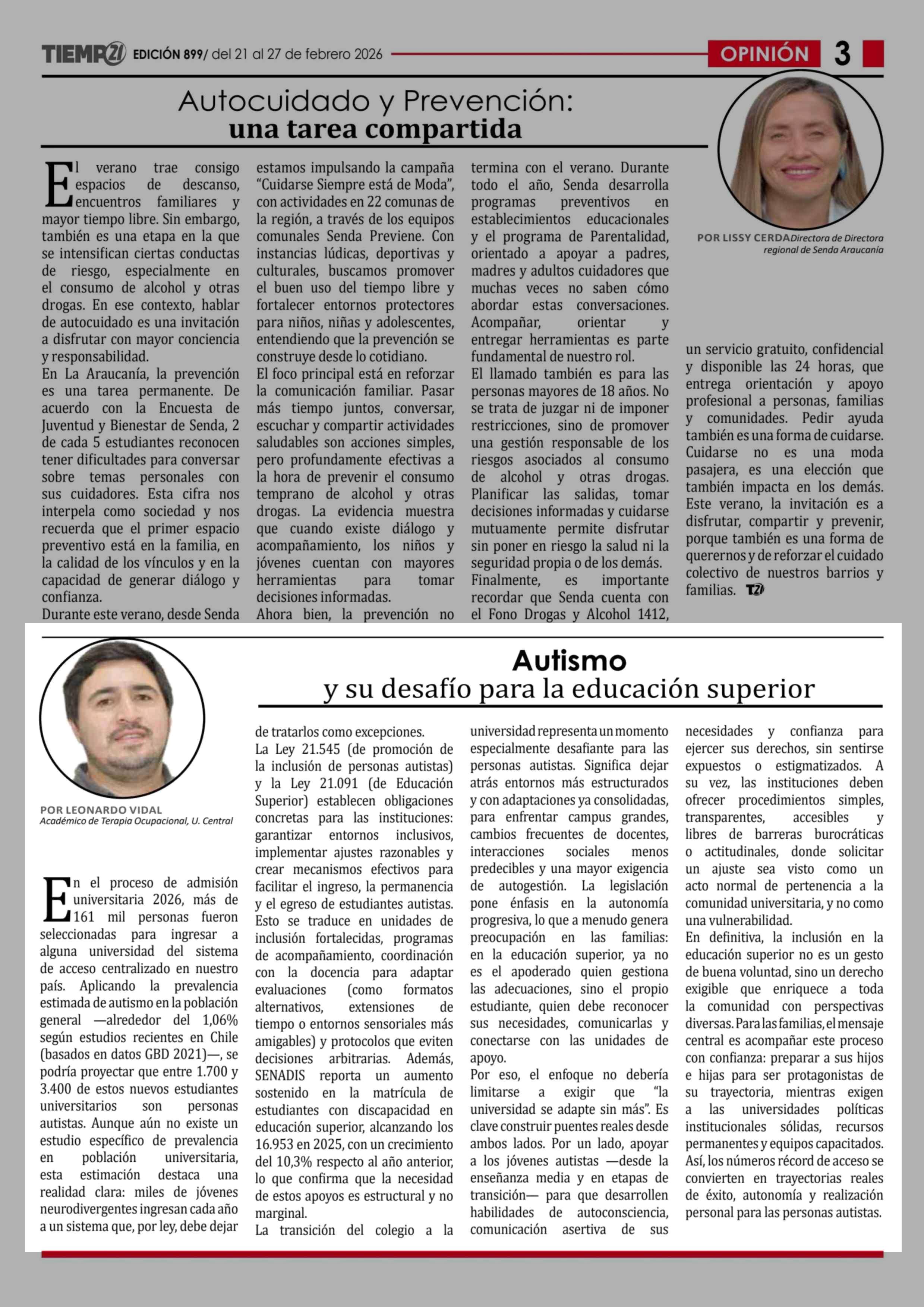 Columnas de Opinión: Autismo y su desafío para la educación superior 21-02-2026 Tiempo 21 |