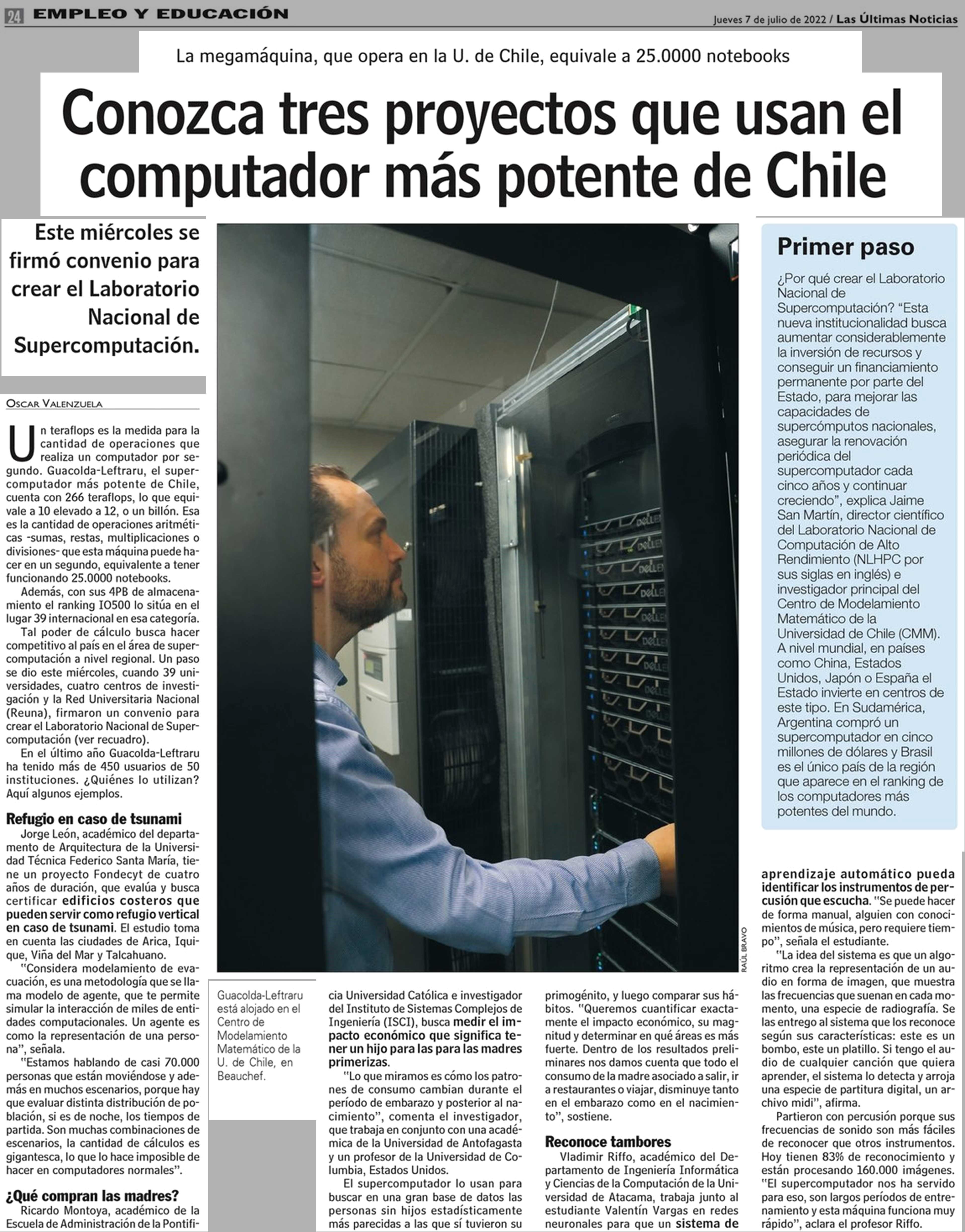 Conozca tres proyectos que usan el computador más potente de Chile 07-07-2022 Las Últimas Noticias |