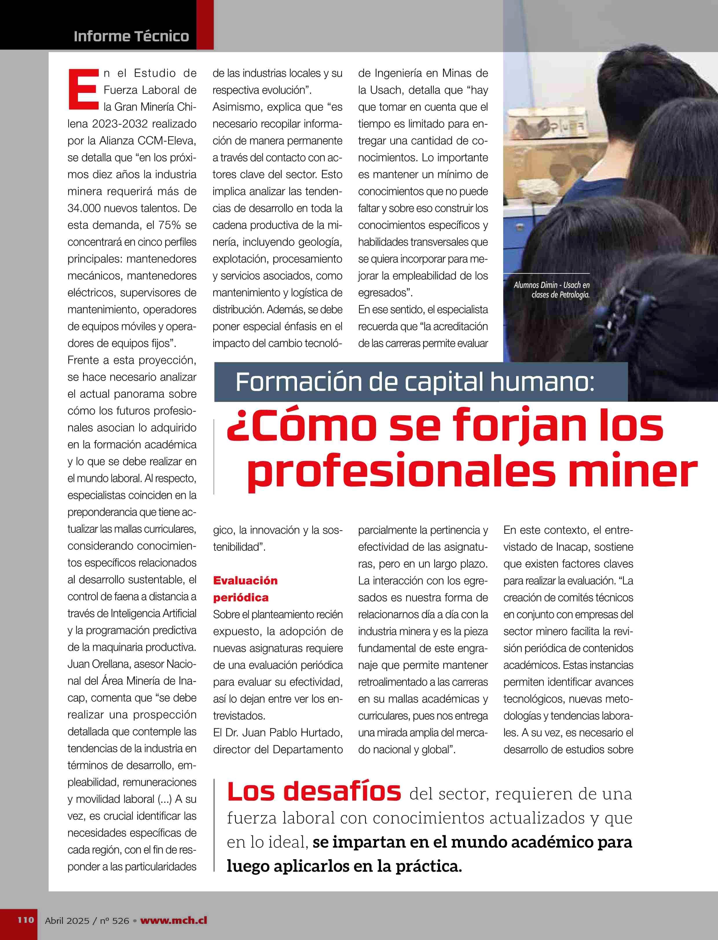 Formación de capital humano: ¿Cómo se forjan los profesionales mineros? 15-04-2025 Revista Minería Chilena |
