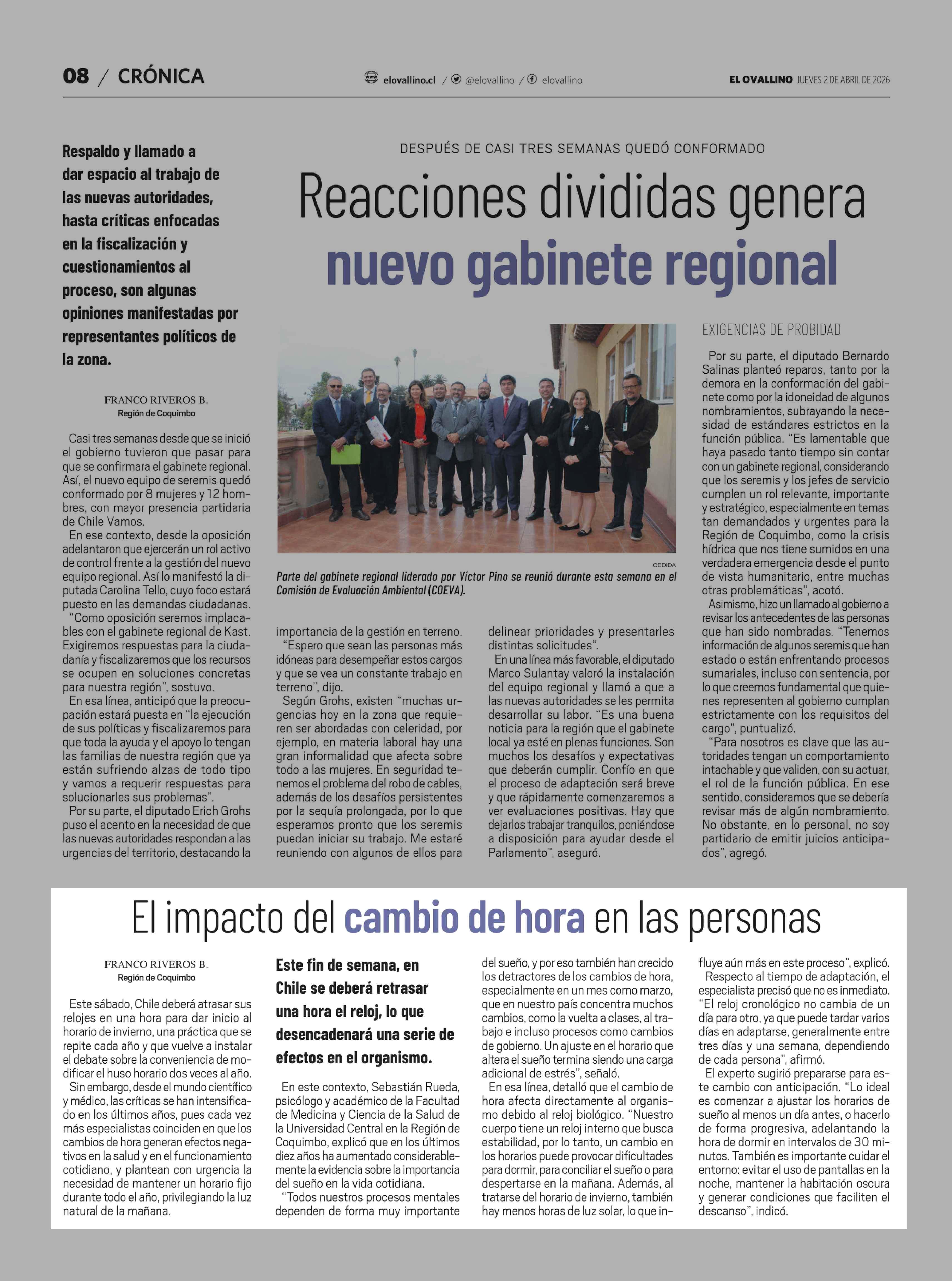 El impacto del cambio de hora en las personas 02-04-2026 El Ovallino |