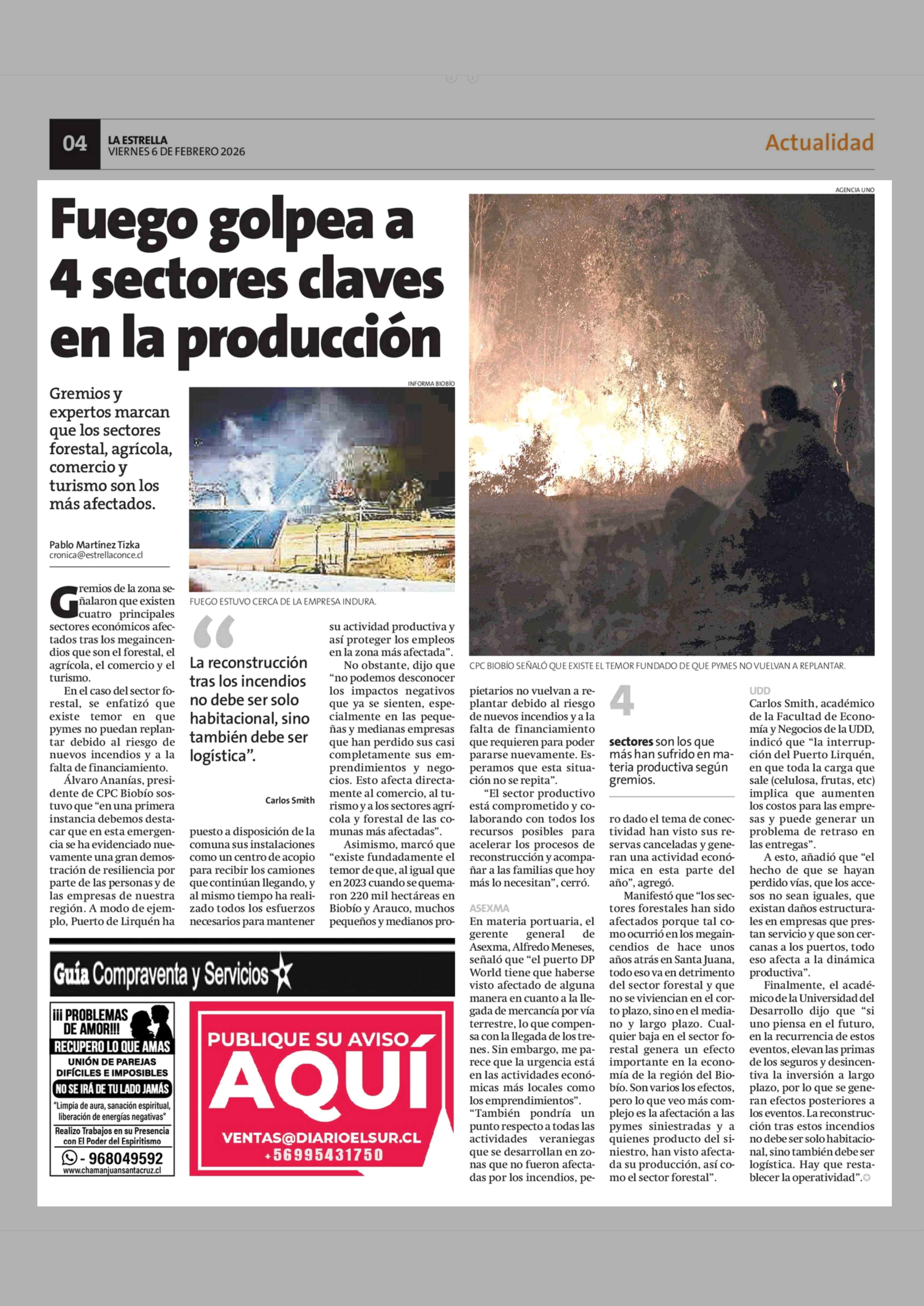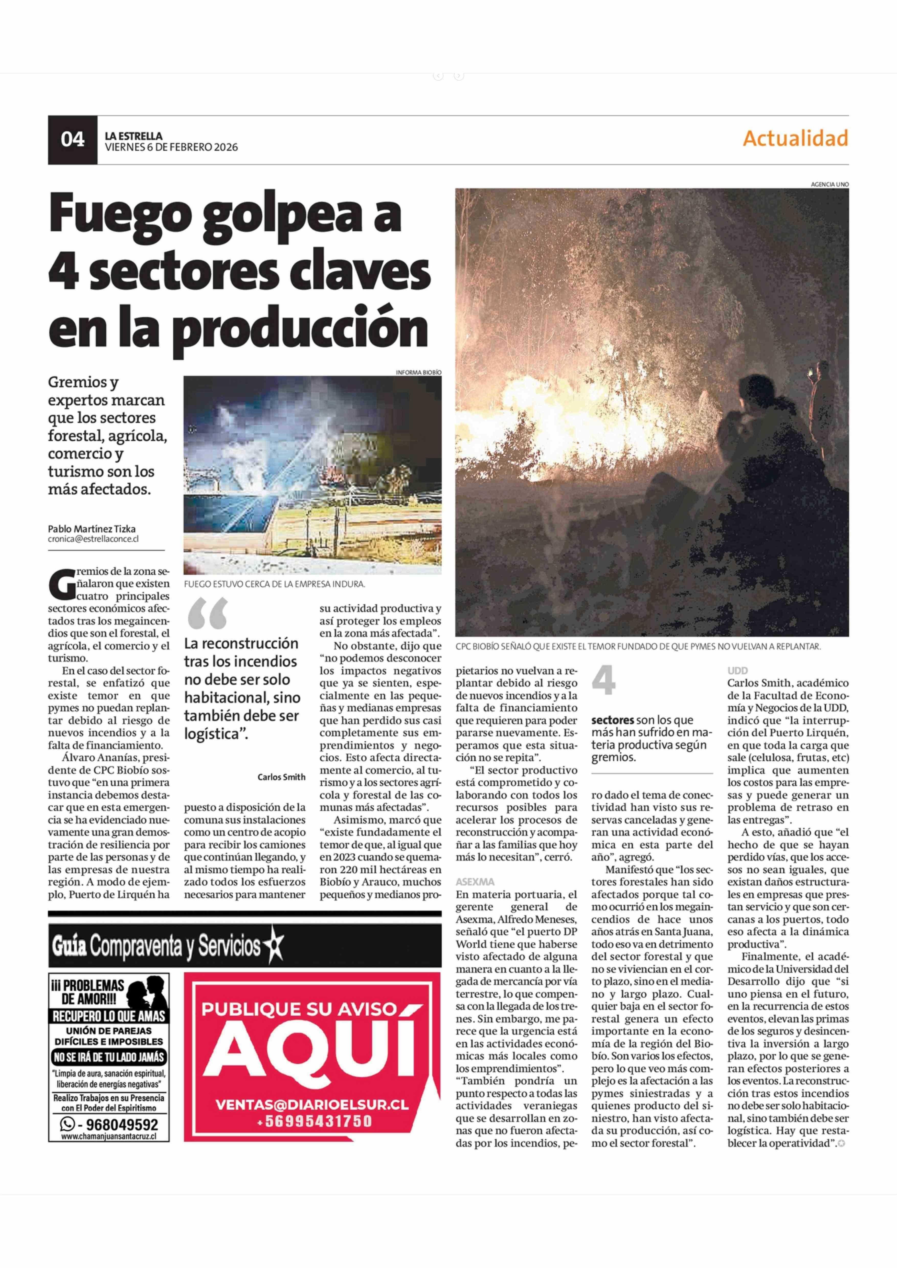 Título: Fuego golpea a 4 sectores claves en la producción
