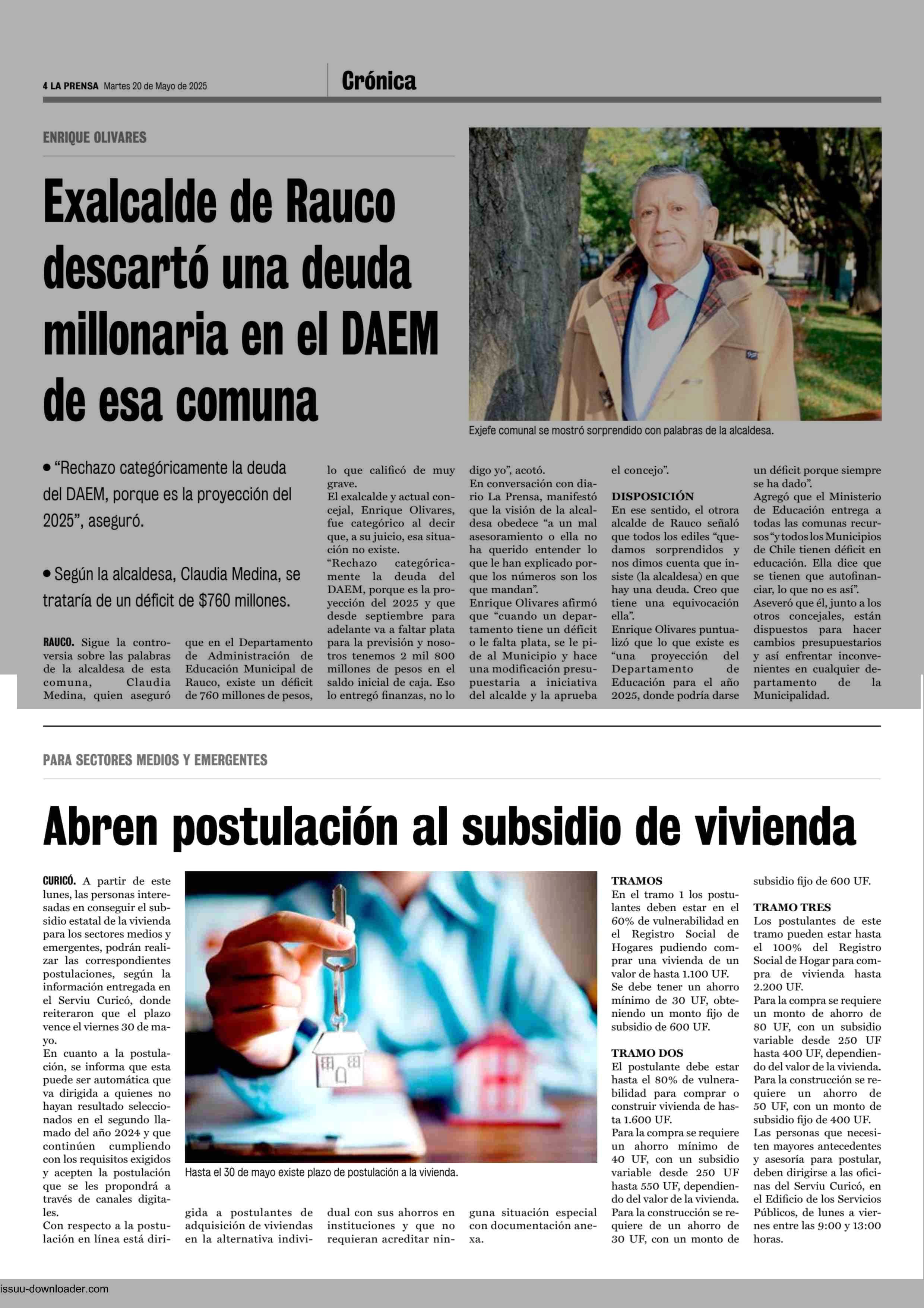 Abren postulación al subsidio de vivienda 20-05-2025 La Prensa de Curicó |