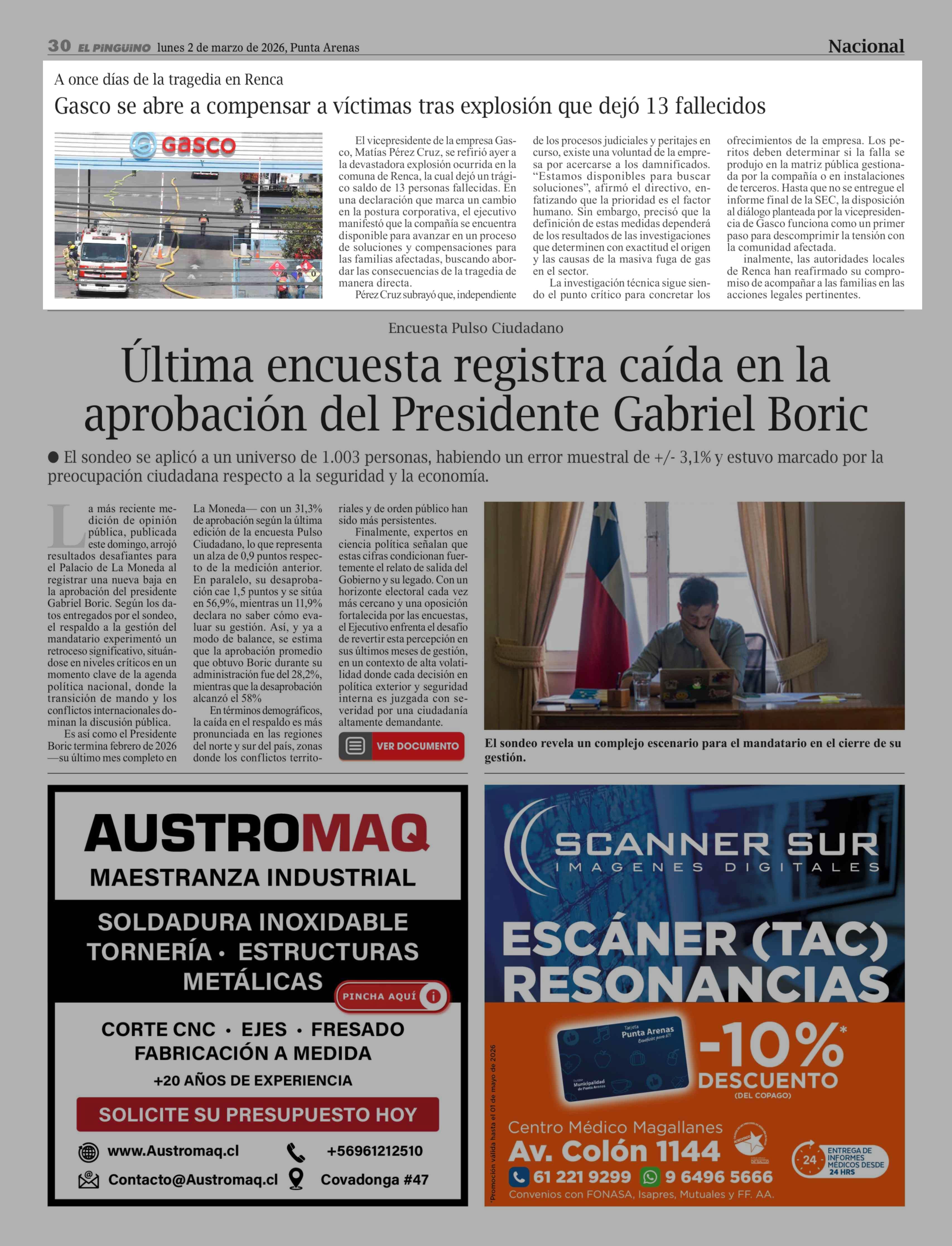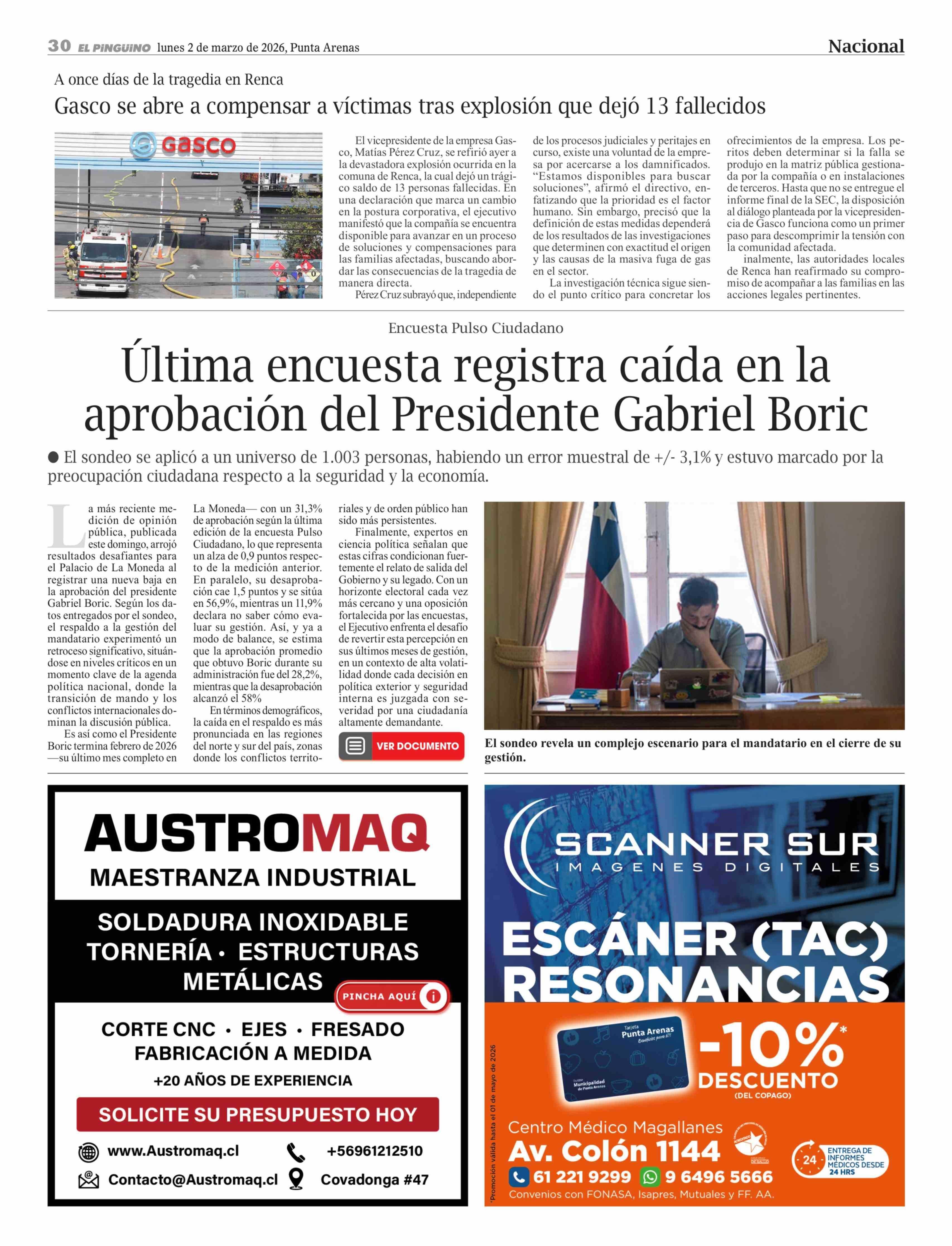 Gasco se abre a compensar a víctimas tras explosión que dejó 13 fallecidos 02-03-2026 El Pingüino |