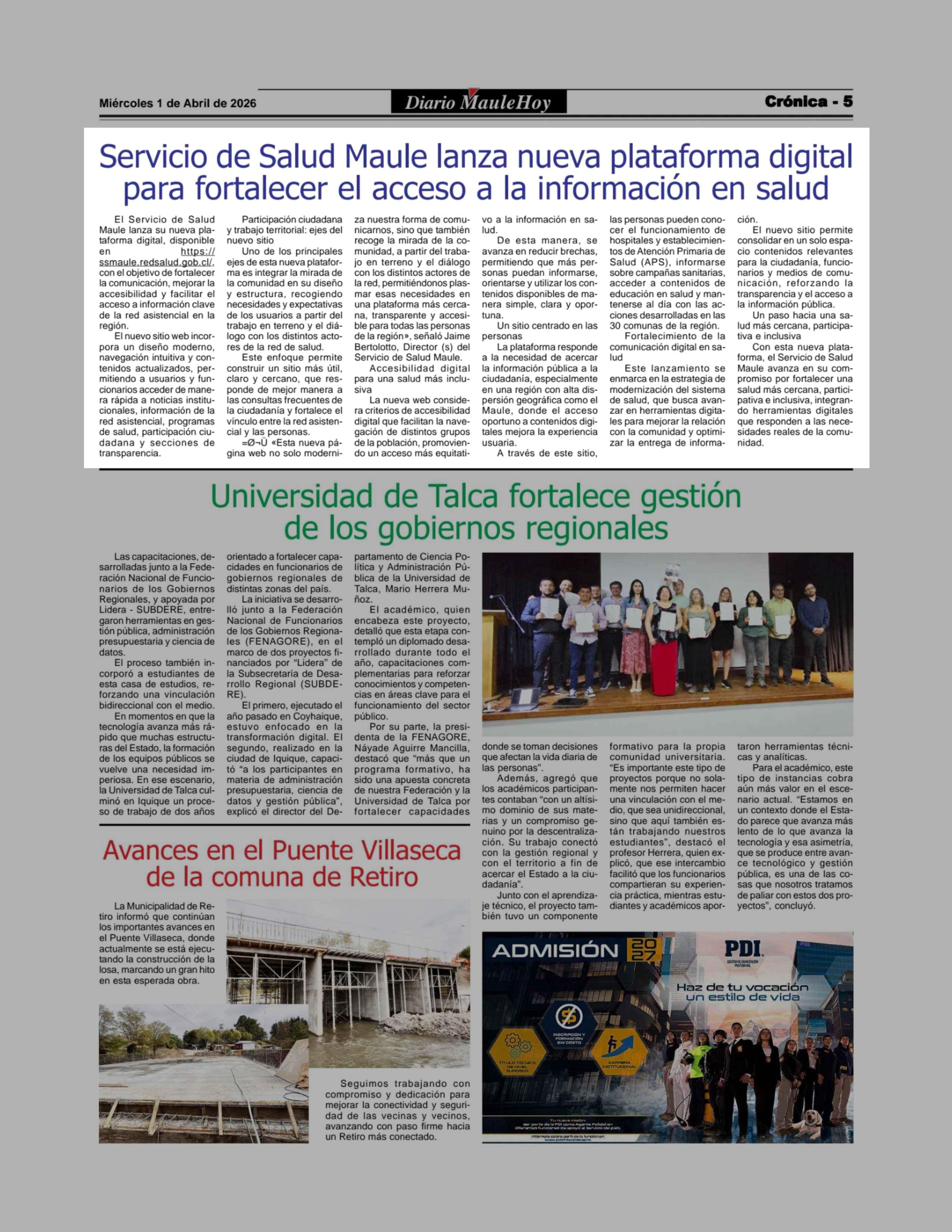 | Fecha: | 01-04-2026 | Sector: | Noticia general | Región: | Región del Maule |