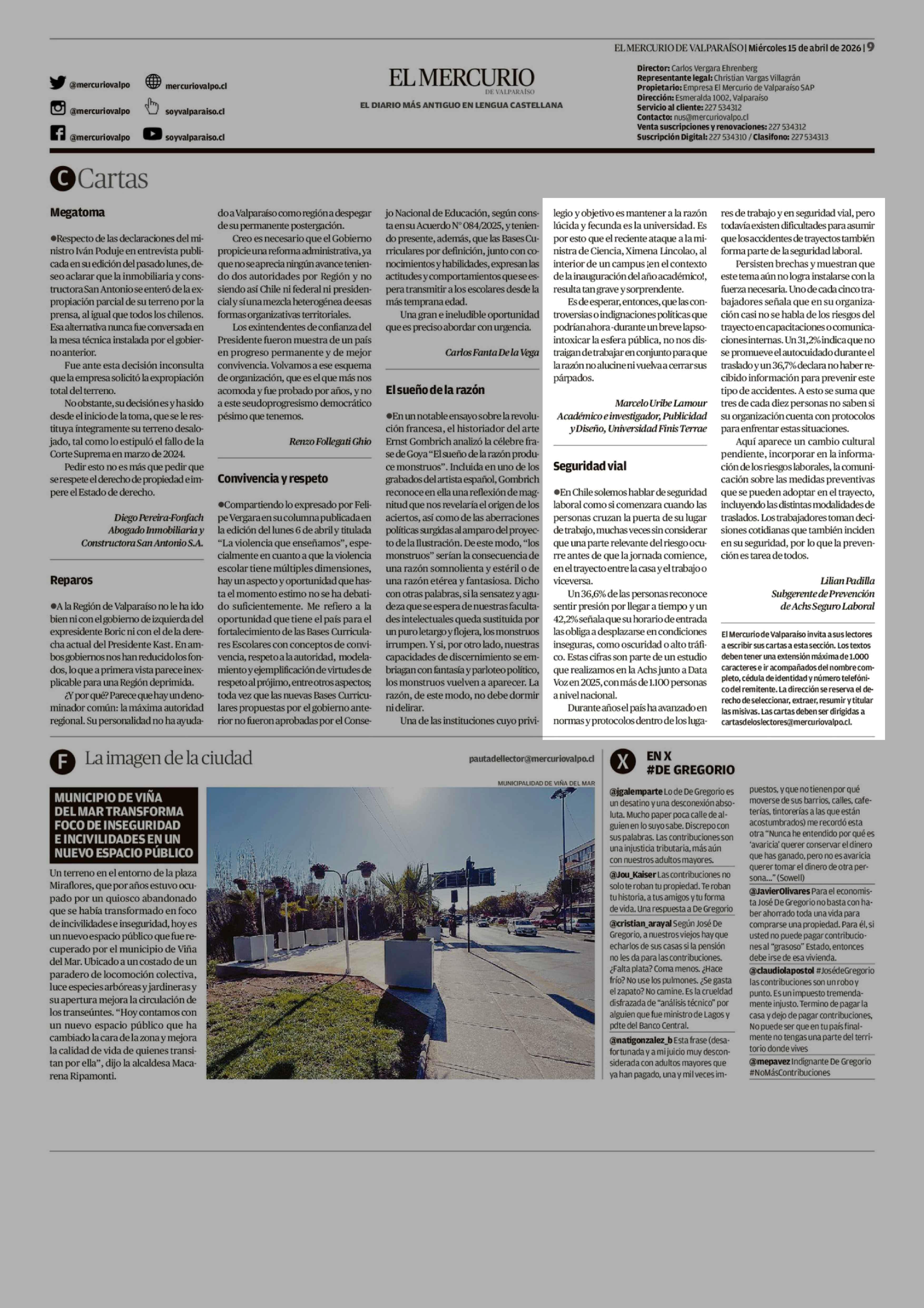 Cartas: Seguridad vial 15-04-2026 El Mercurio de Valparaíso |