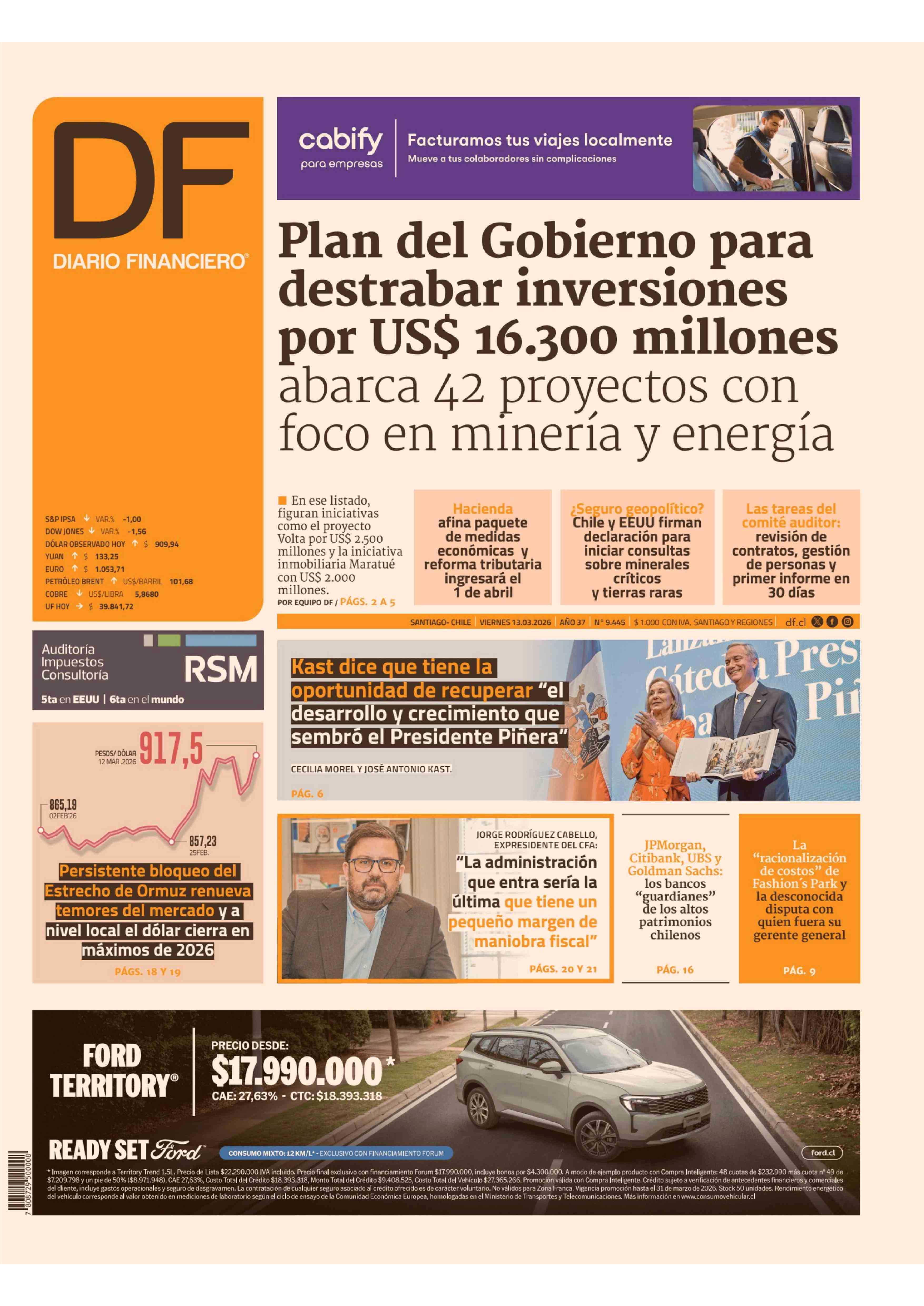 PORTADA DIARIO FINANCIERO CHILE 13-03-2026 Diario Financiero |