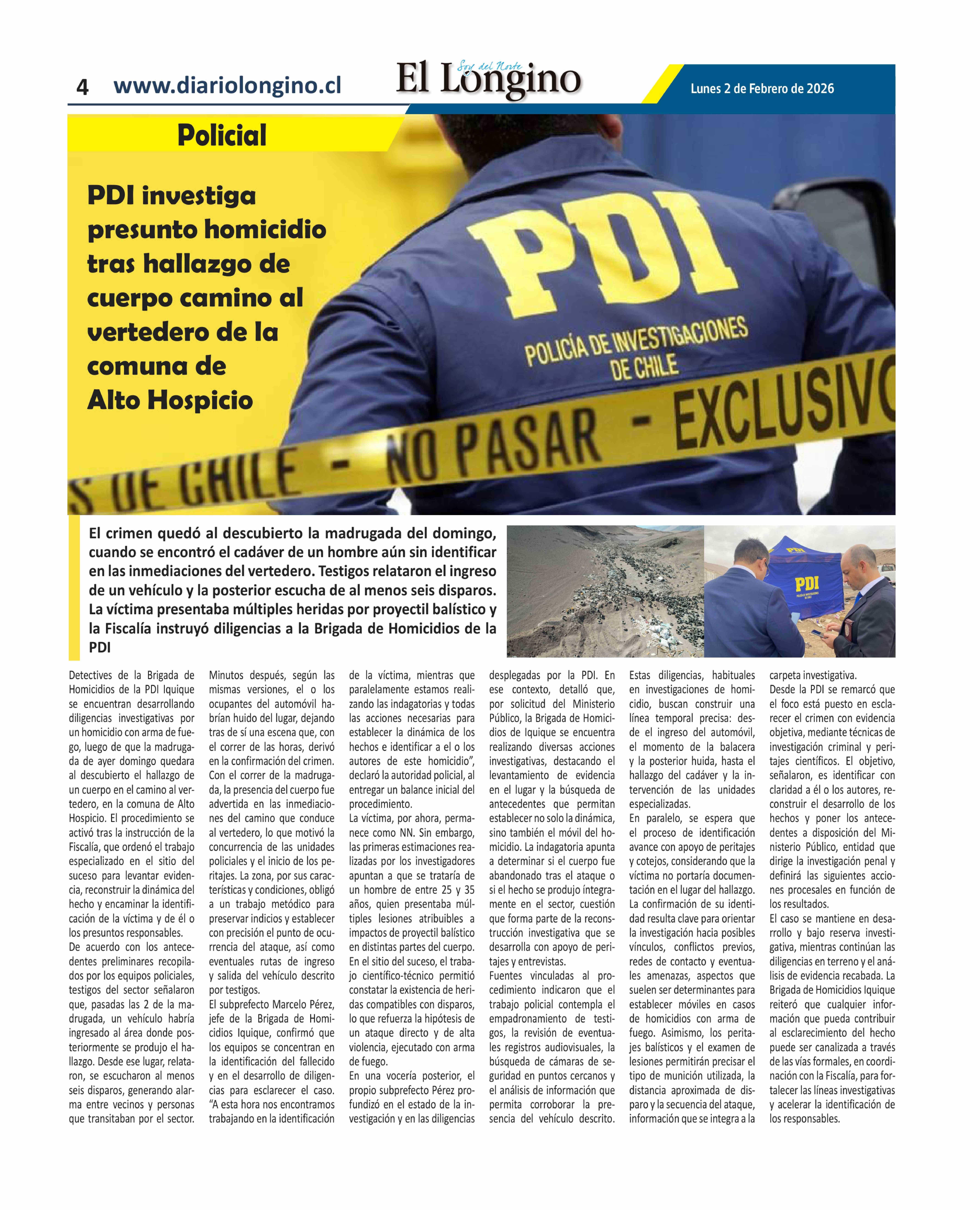 Fecha: 02-02-2026 Sector: Noticia general Región: Región de Tarapacá