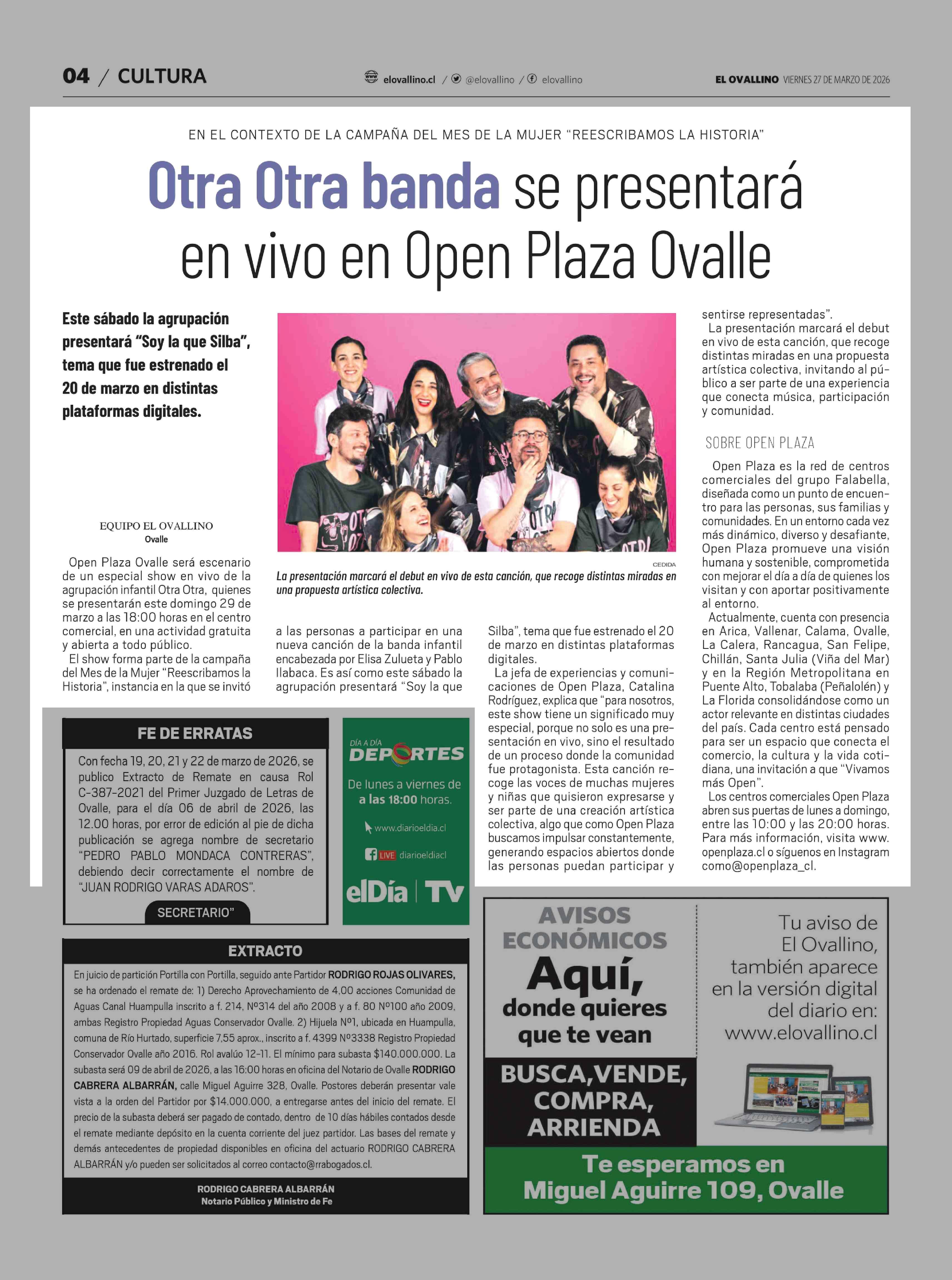 Título: Otra Otra banda se presentará en vivo en Open Plaza Ovalle