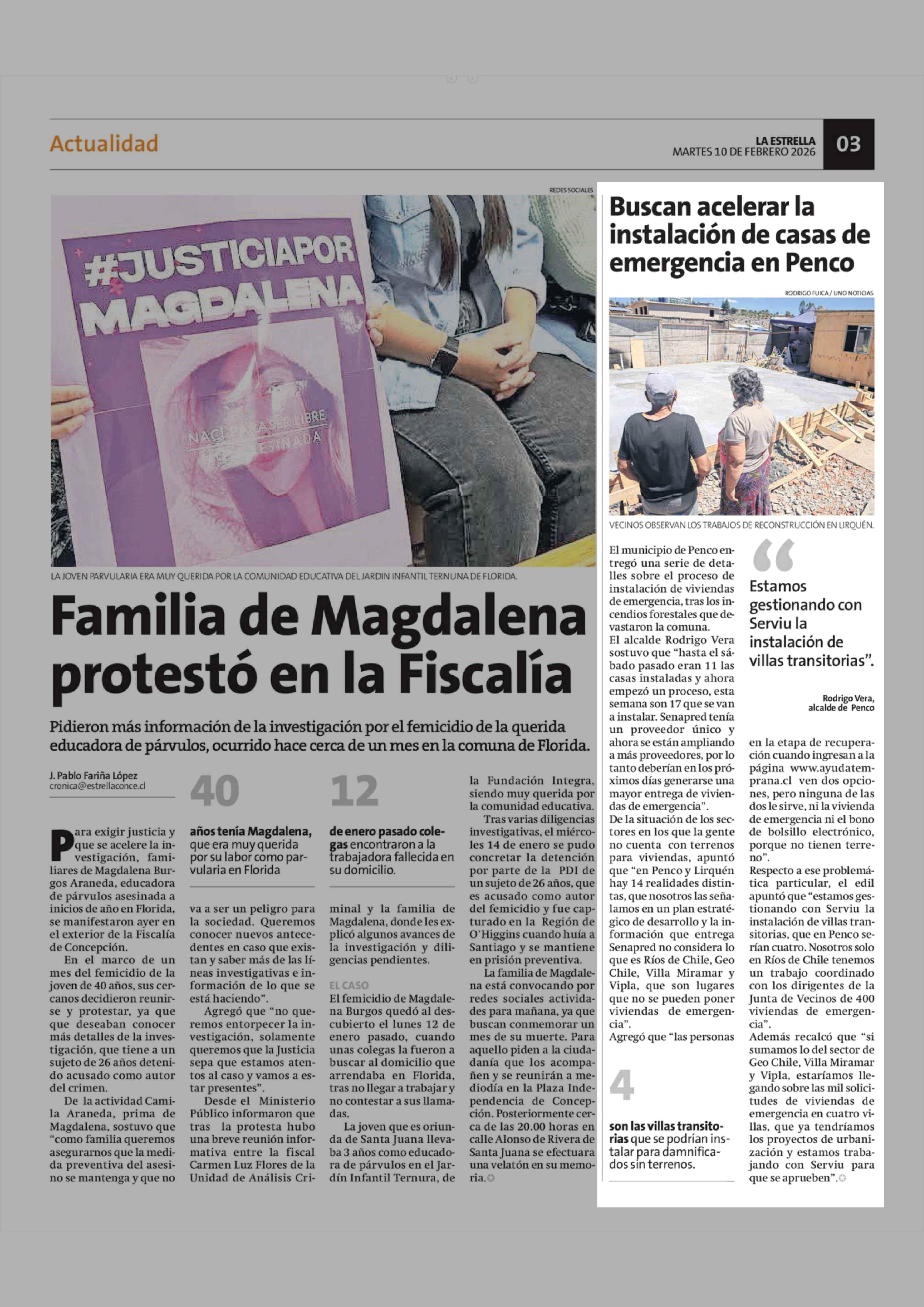 Buscan acelerar la instalación de casas de emergencia en Penco 10-02-2026 La Estrella de Concepción |