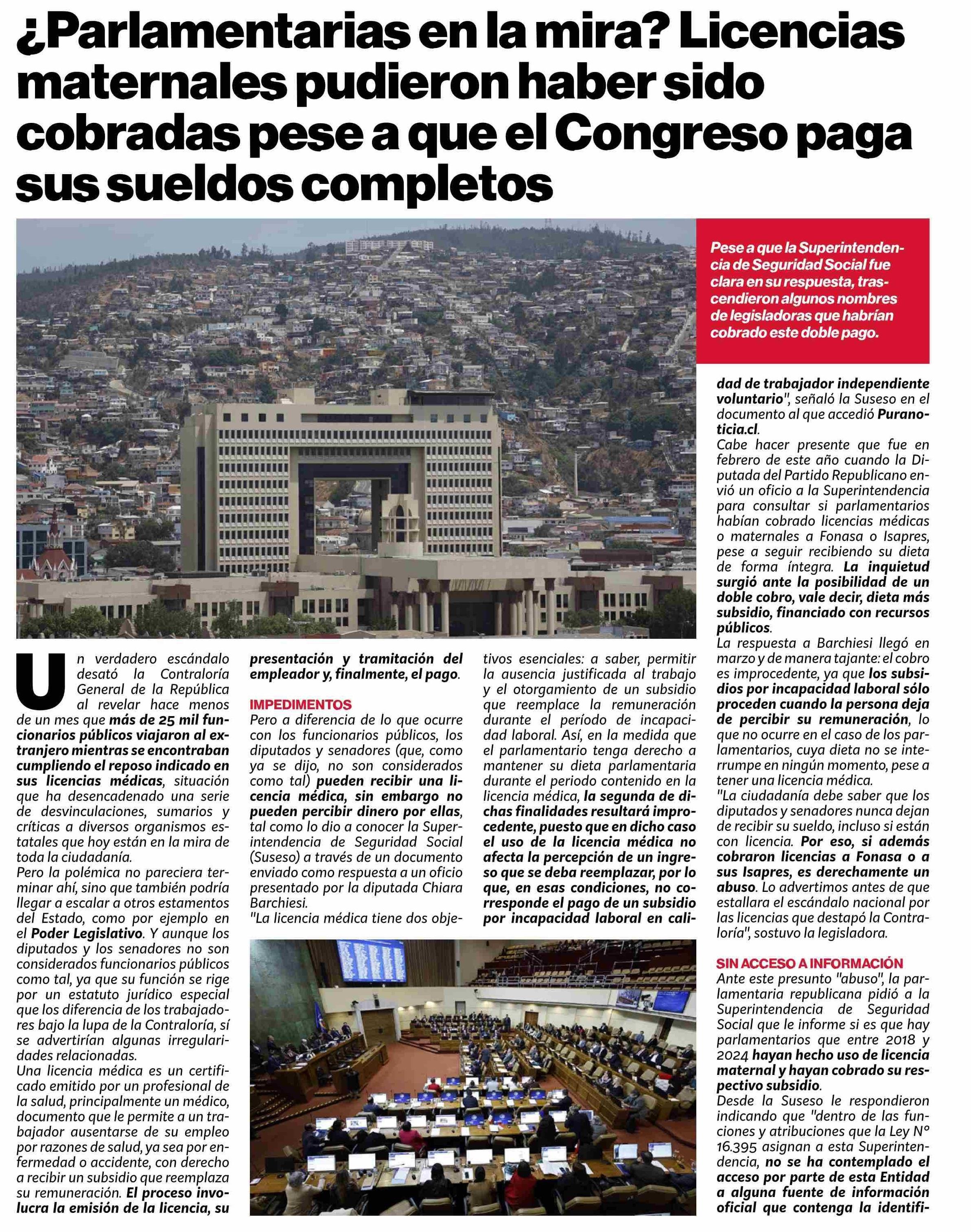 ¿Parlamentarias en la mira? Licencias maternales pudieron haber sido cobradas pese a que el Congreso paga sus sueldos completos 17-06-2025 Puranoticia.cl |