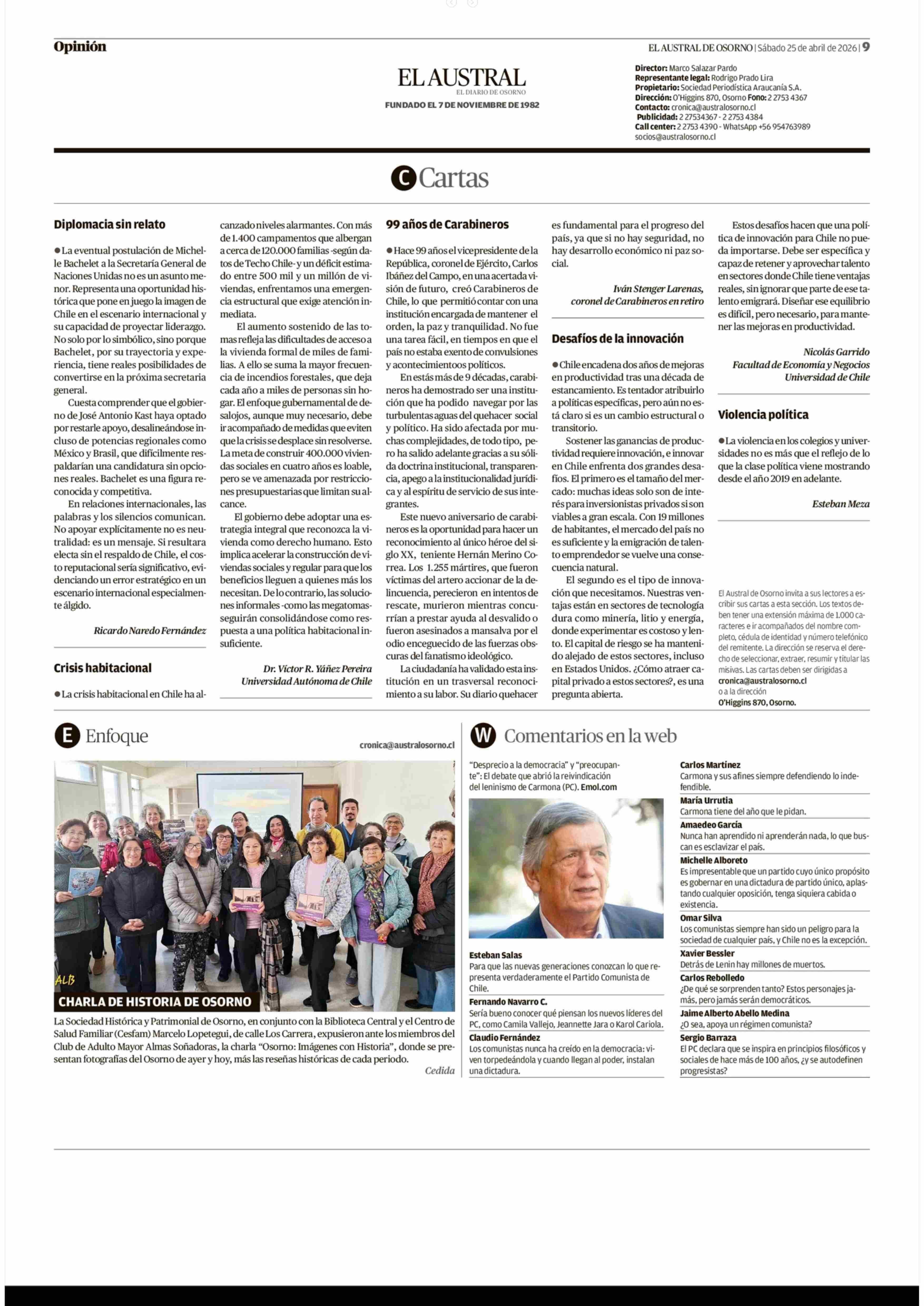 Fuente: El Austral de Osorno (El Austral de Osorno) Página(s): 9