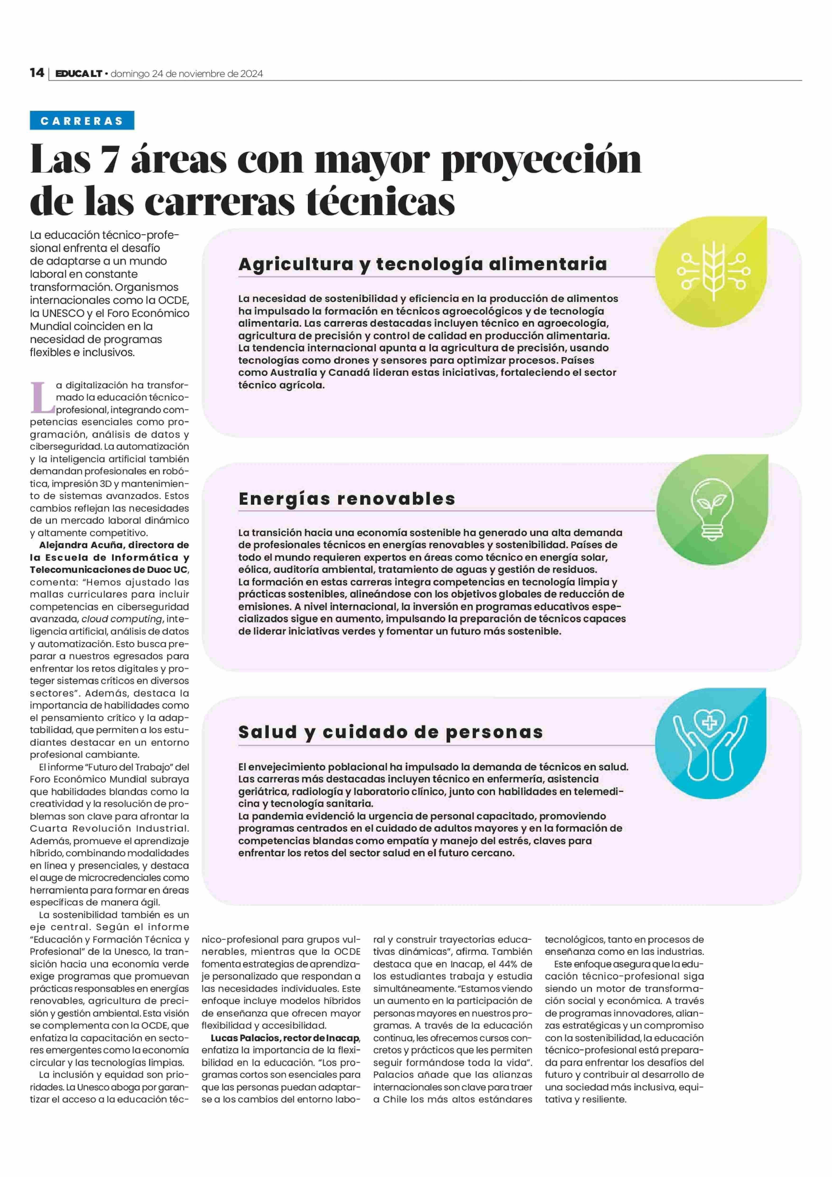 Las 7 áreas con mayor proyección de las carreras técnicas 24-11-2024 La Tercera |