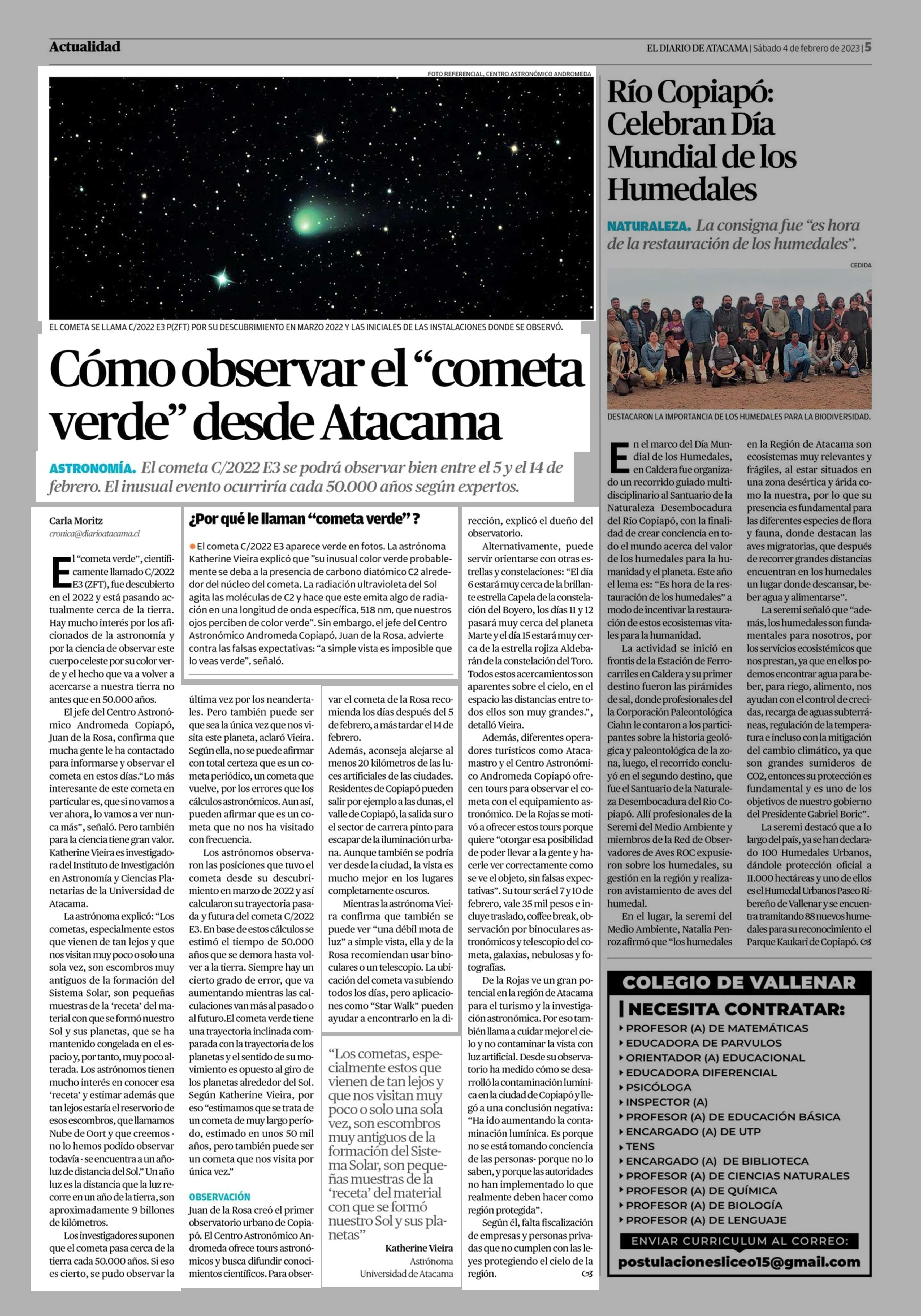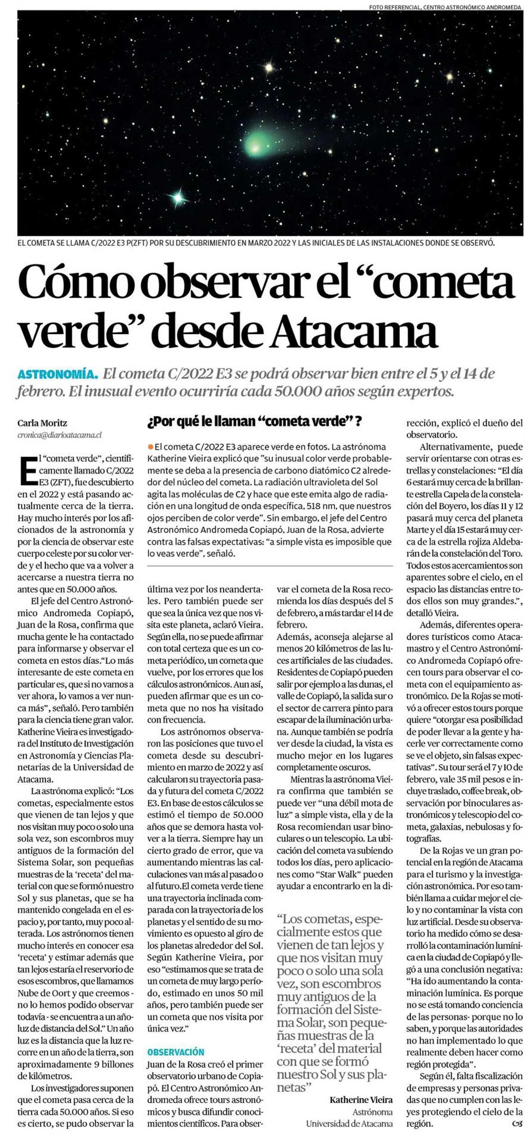 Cómo observar el “cometa verde” desde Atacama 04-02-2023 El Diario de Atacama |