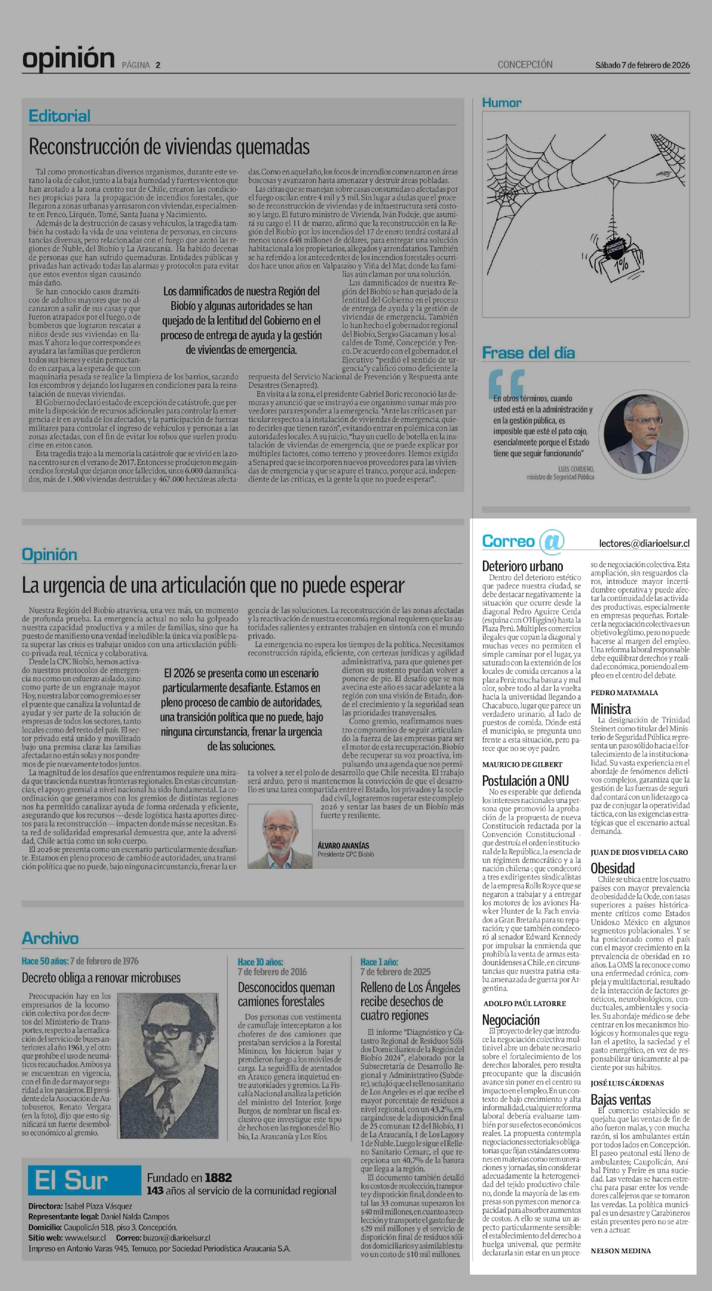Cartas: Correo 07-02-2026 El Sur |