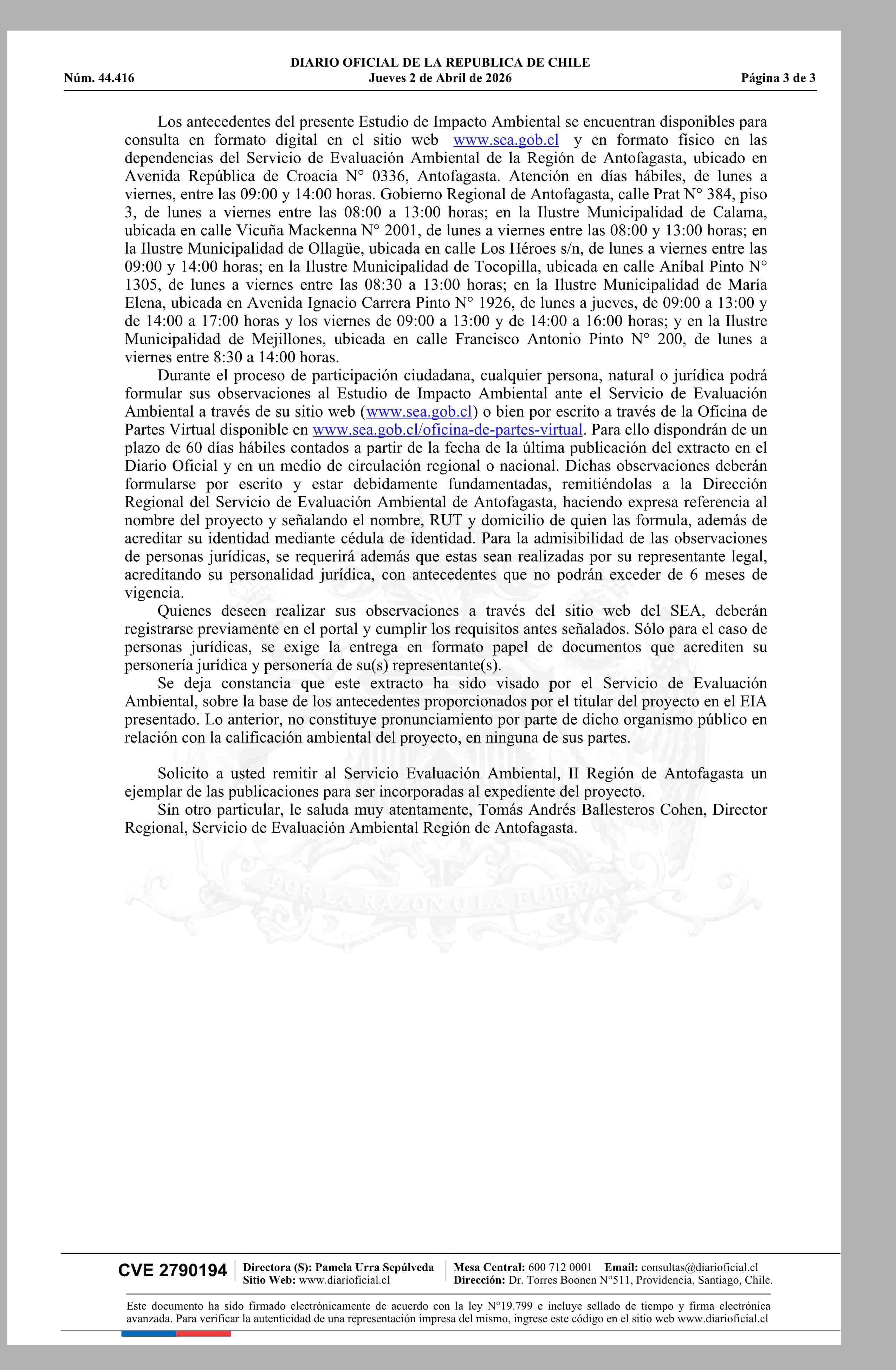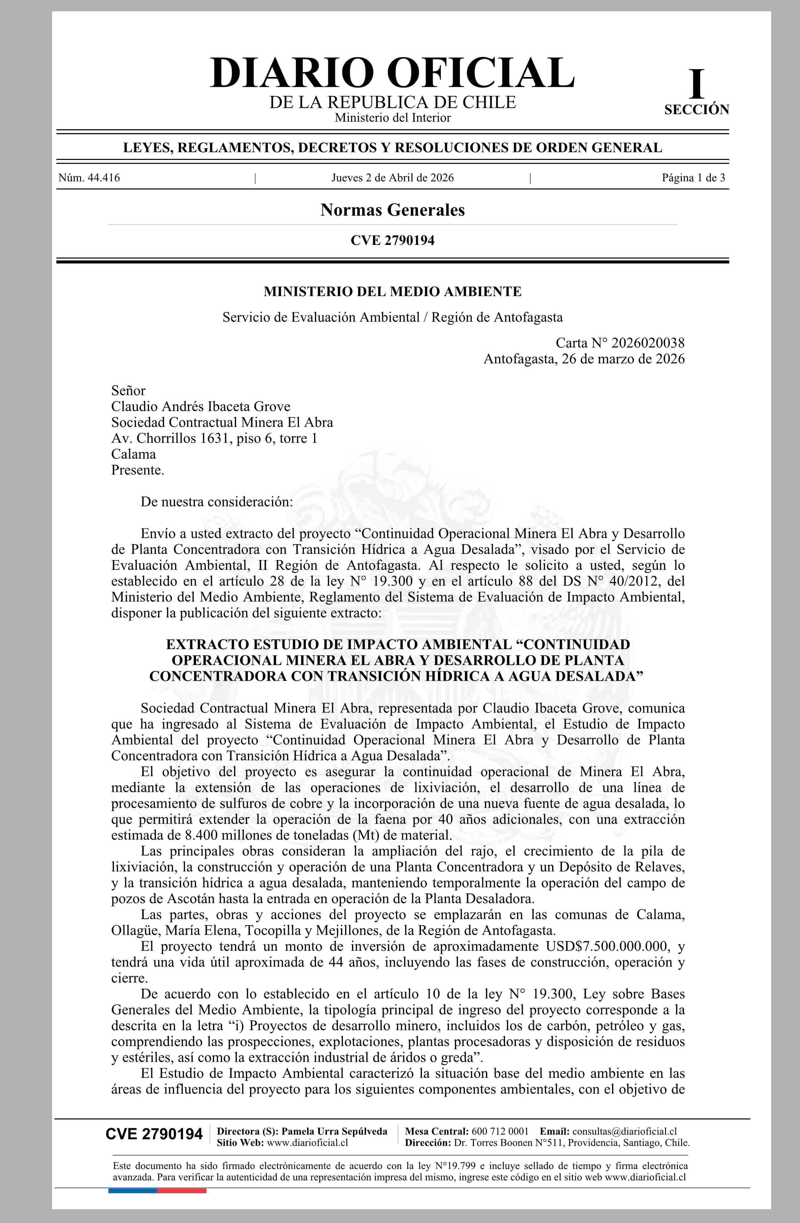 MINISTERIO DEL MEDIO AMBIENTE 02-04-2026 Diario Oficial Edición Electrónica |