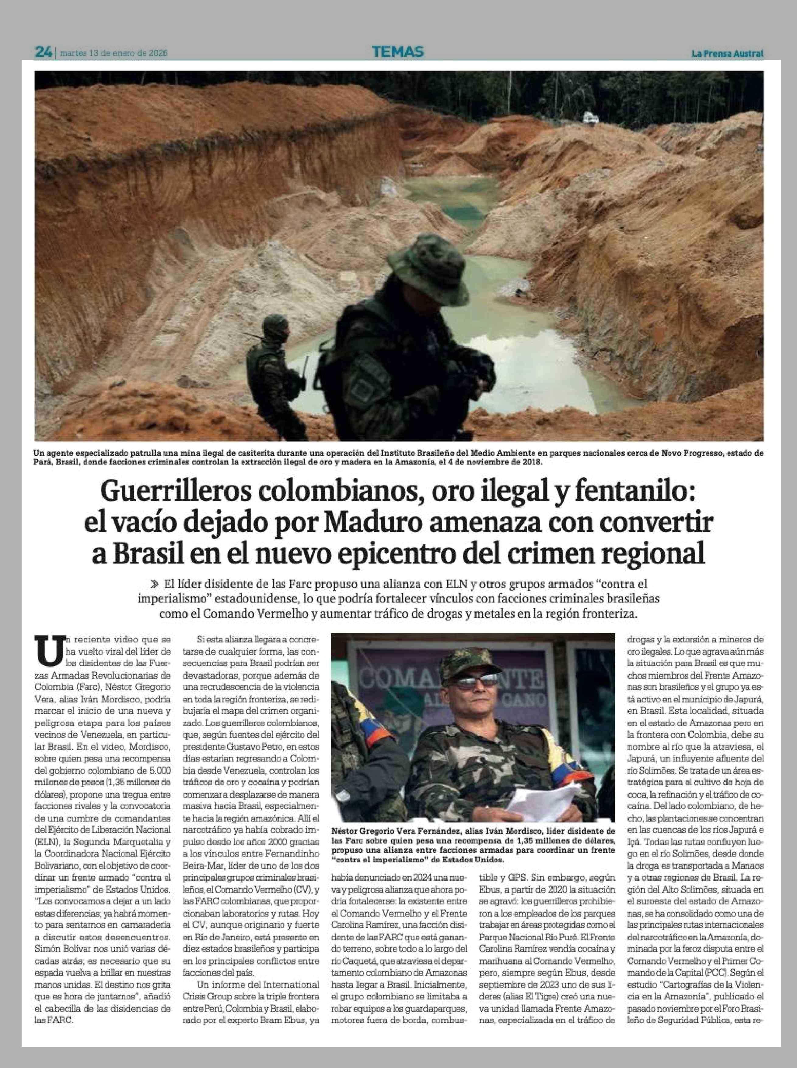 Título: Guerrilleros colombianos, oro ilegal y fentanilo: el vacío dejado por Maduro amenaza con convertir a Brasil en el nuevo epicentro del crimen regional