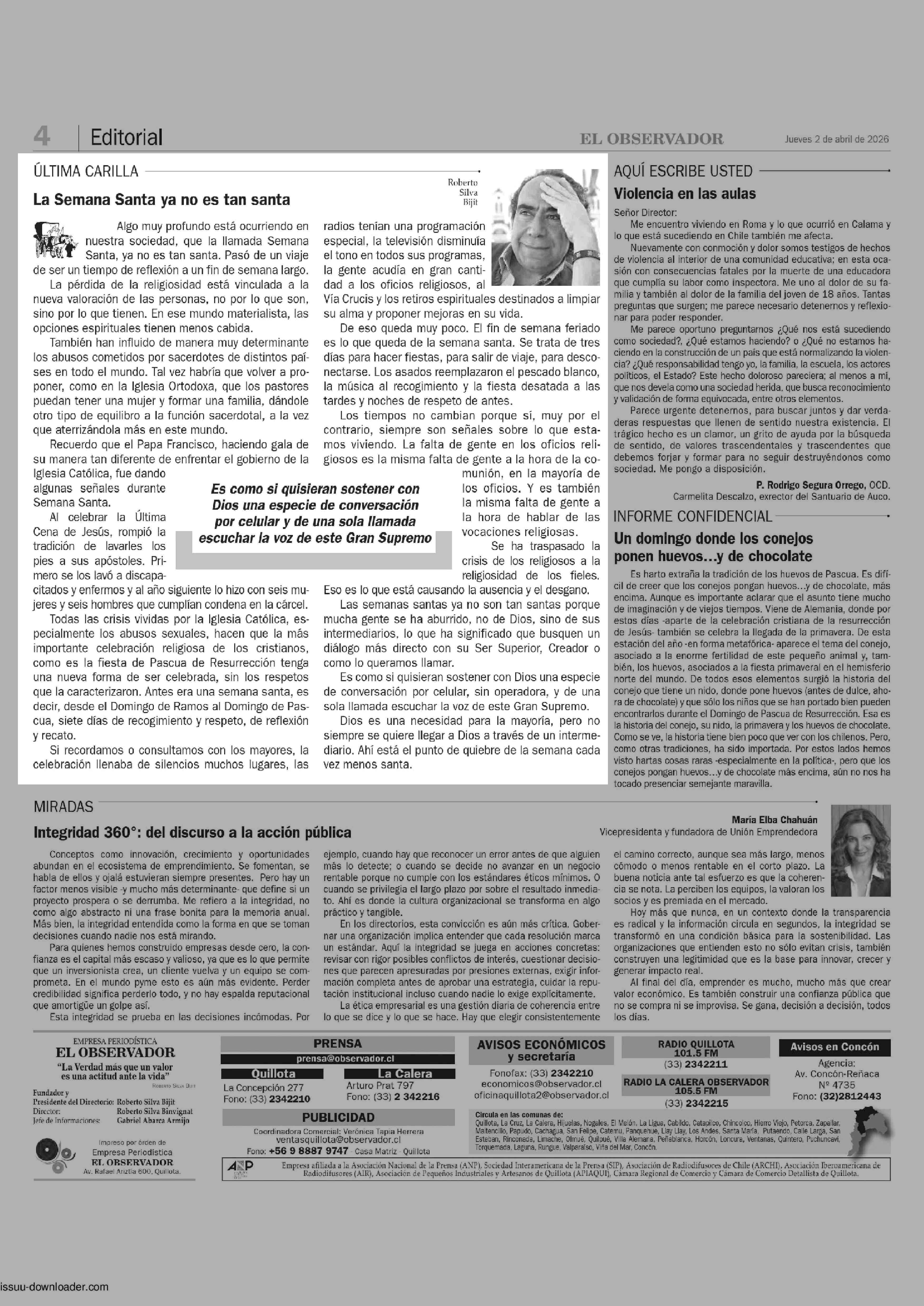 COLUMNAS DE OPINIÓN: La Semana Santa ya no es tan santa 02-04-2026 El Observador |