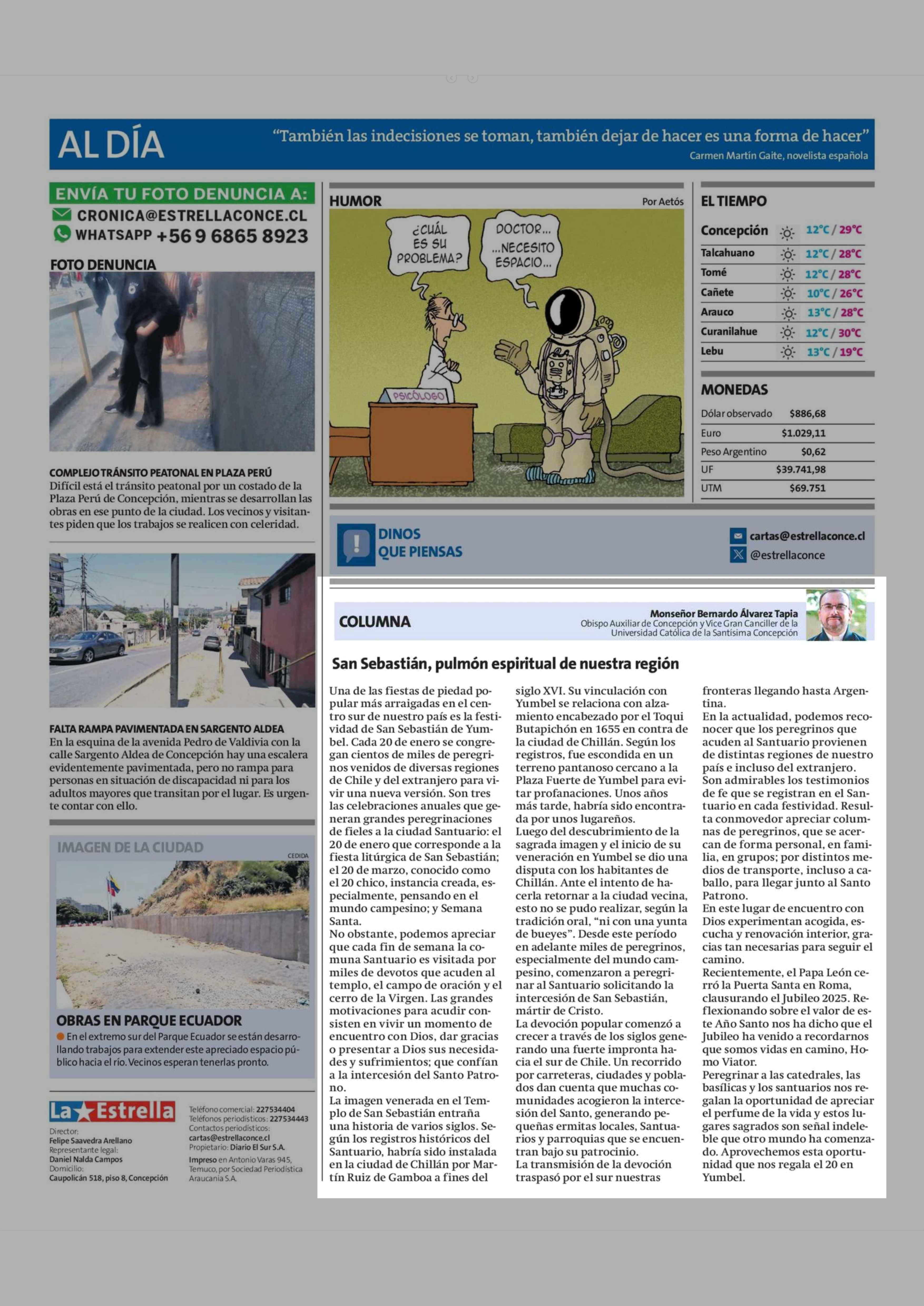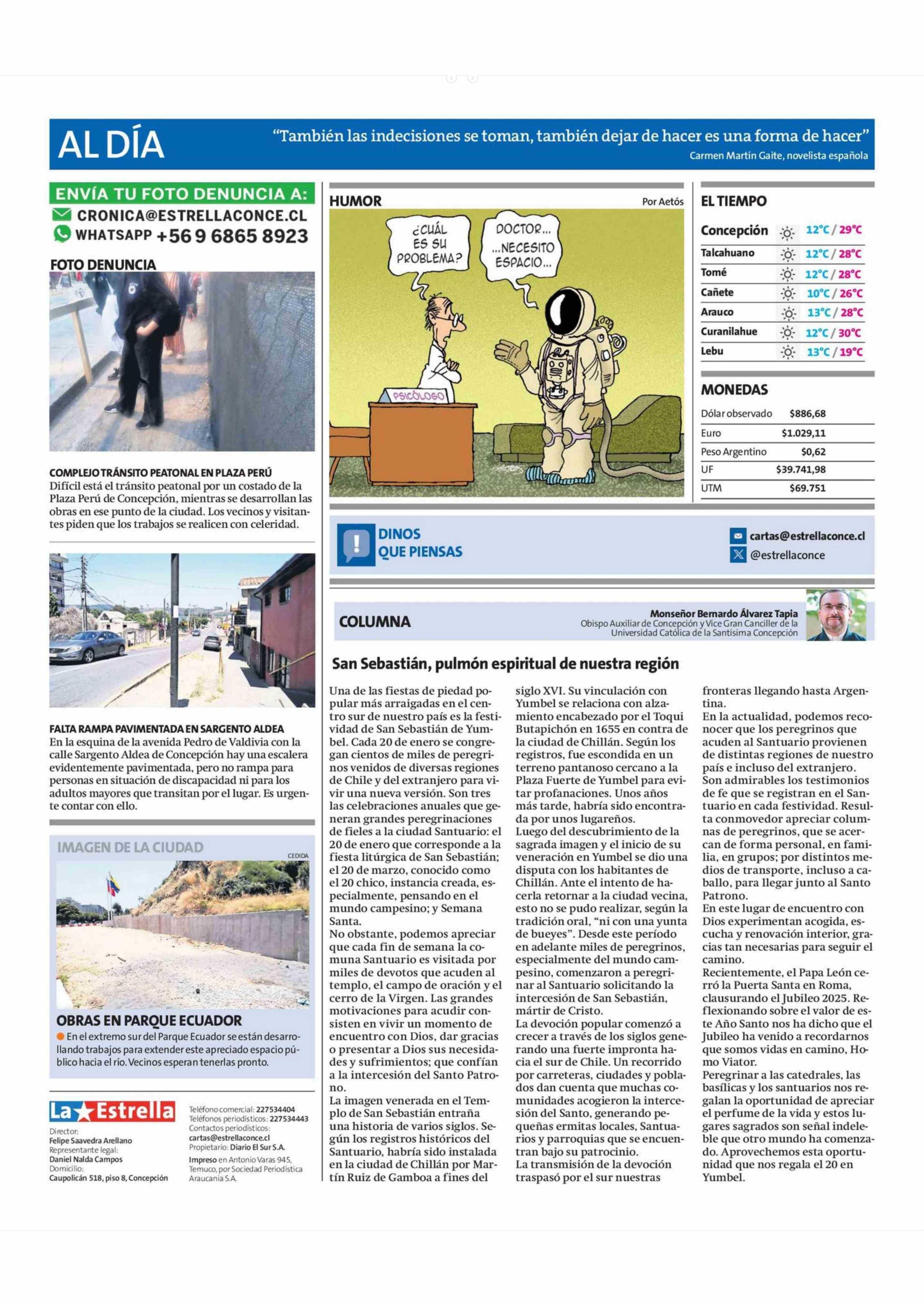 Columnas de Opinión: San Sebastián, pulmón espiritual de nuestra región 17-01-2026 La Estrella de Concepción |