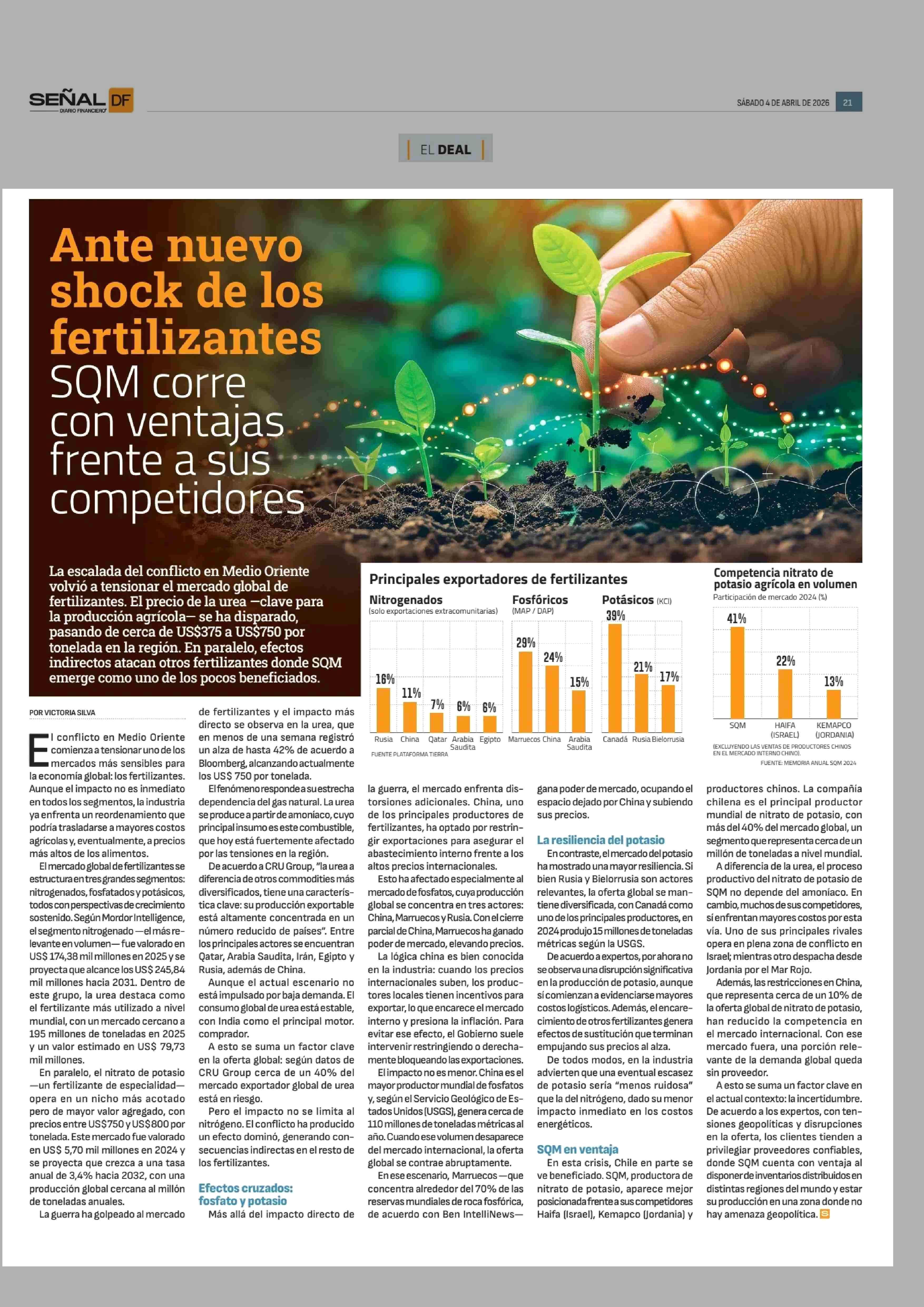 Título: Ante nuevo shock de los fertilizantes SQM corre con ventajas frente a sus competidores