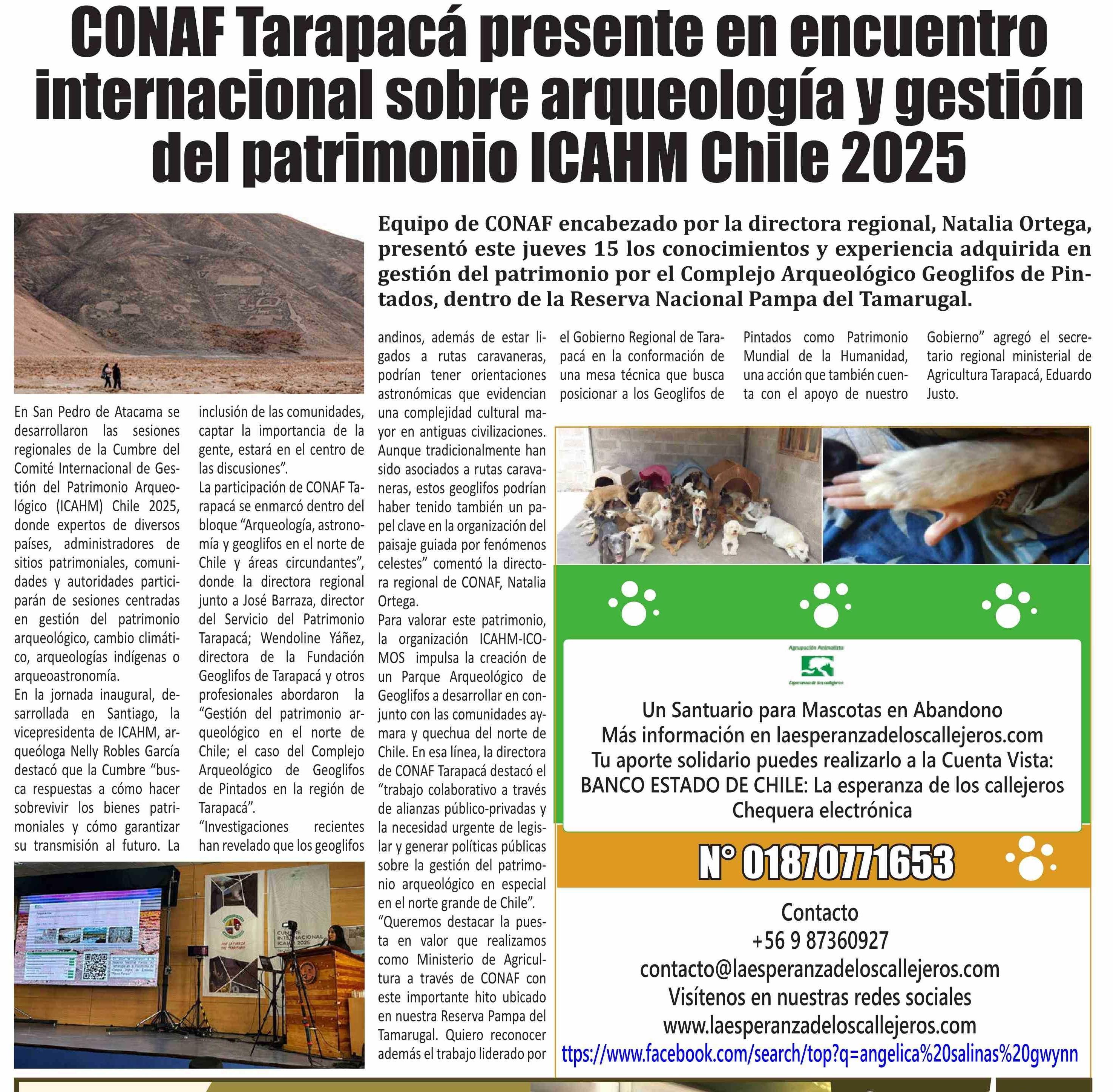 CONAF Tarapacá presente en encuentro internacional sobre arqueología y gestión del patrimonio ICAHM Chile 2025 20-05-2025 El Longino |