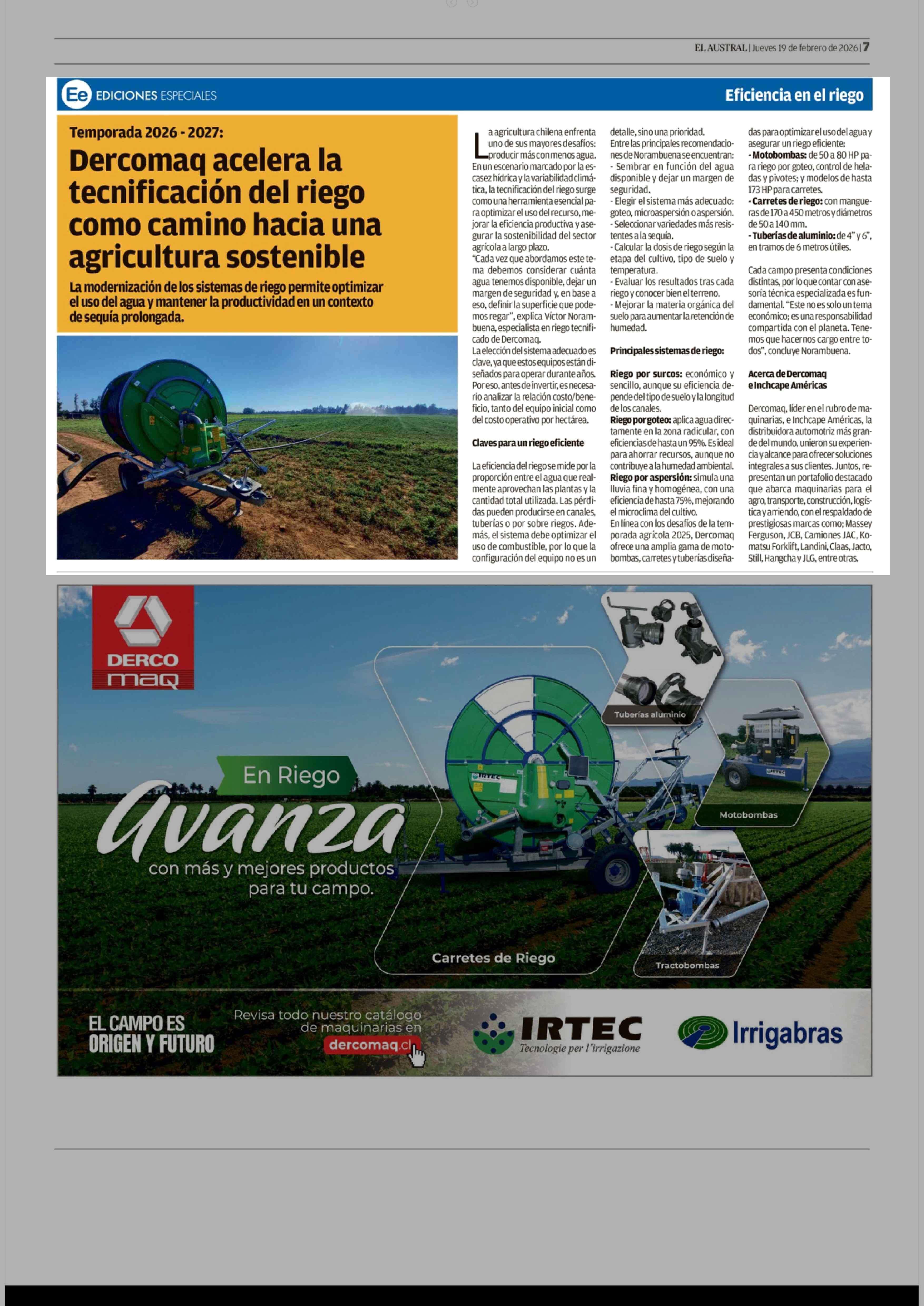 Título: Dercomaq acelera la tecnificación del riego como camino hacia una agricultura sostenible