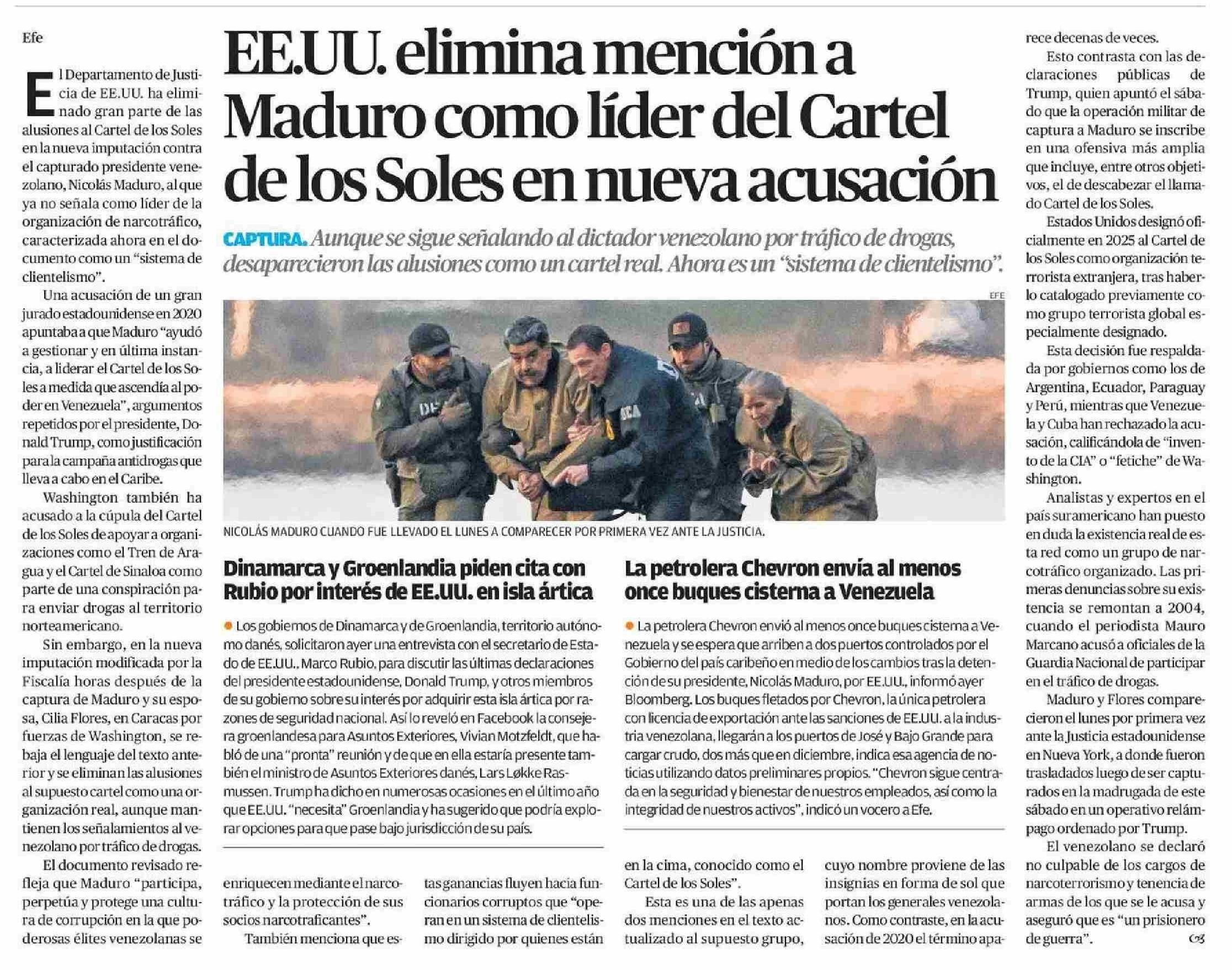 Título: EE.UU. elimina mención a Maduro como líder del Cartel de los Soles en nueva acusación