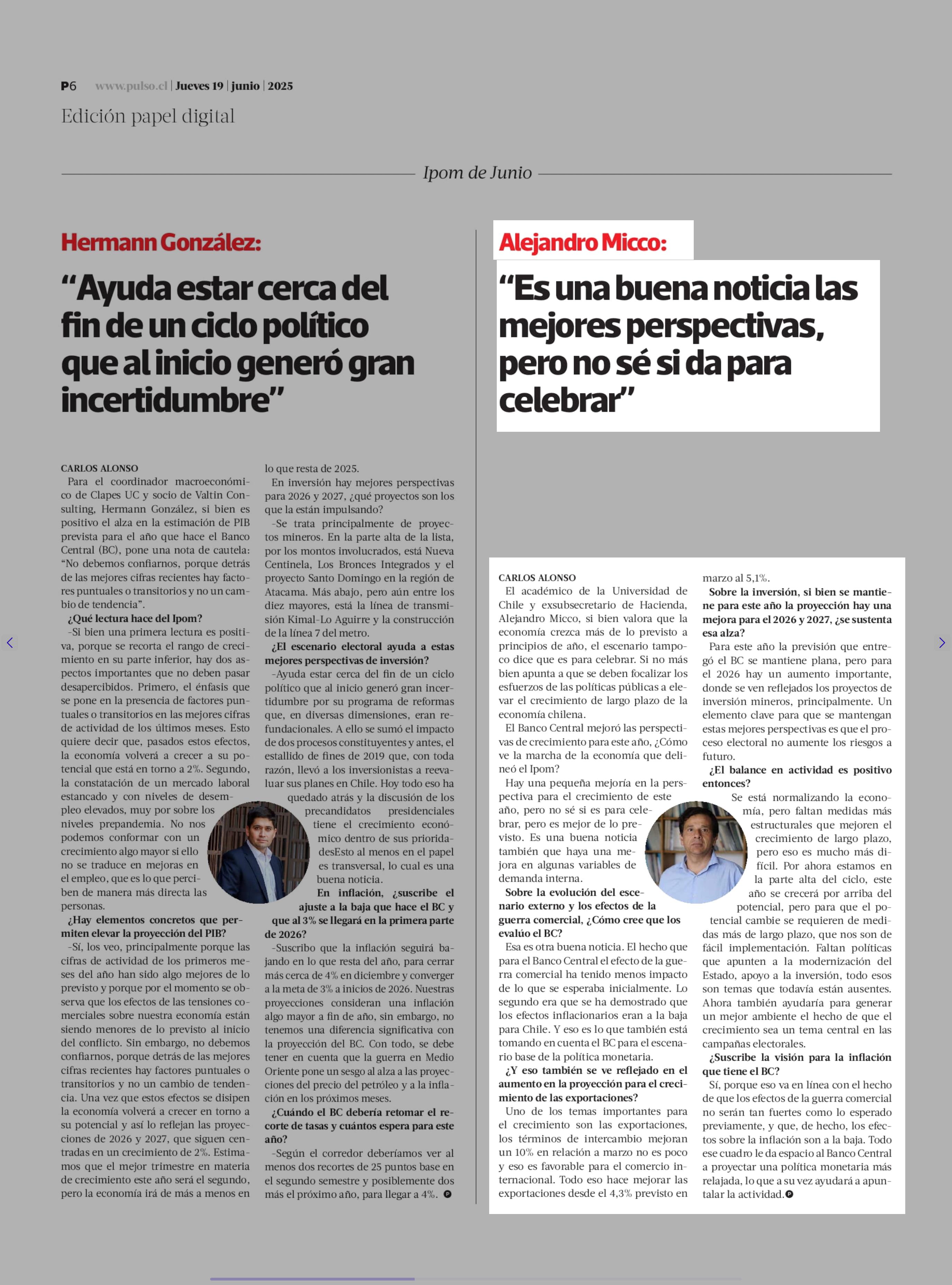 “Es una buena noticia las mejores perspectivas, pero no sé si da para celebrar” 19-06-2025 La Tercera |