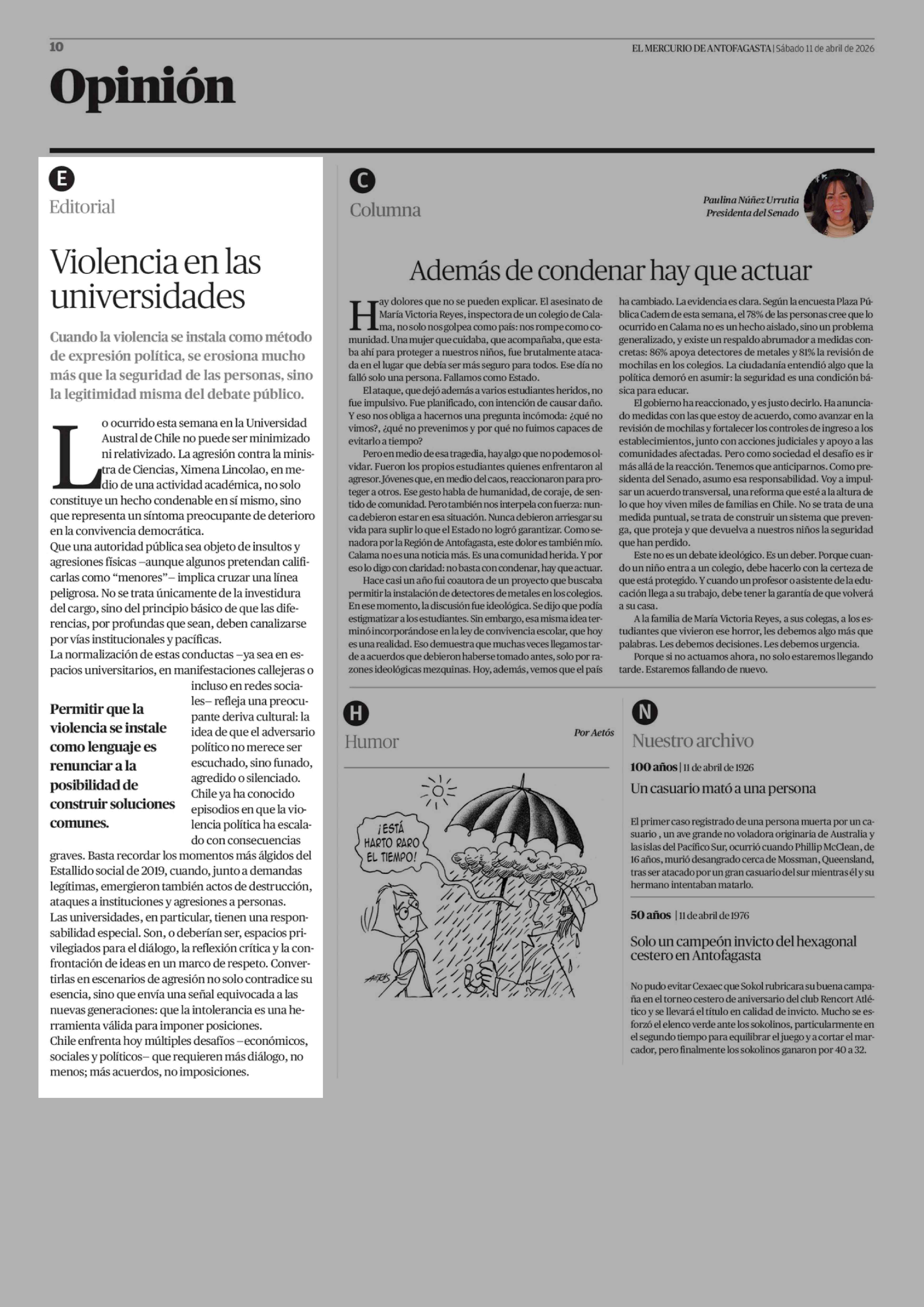 Editorial: Violencia en las universidades 11-04-2026 El Mercurio de Antofagasta |