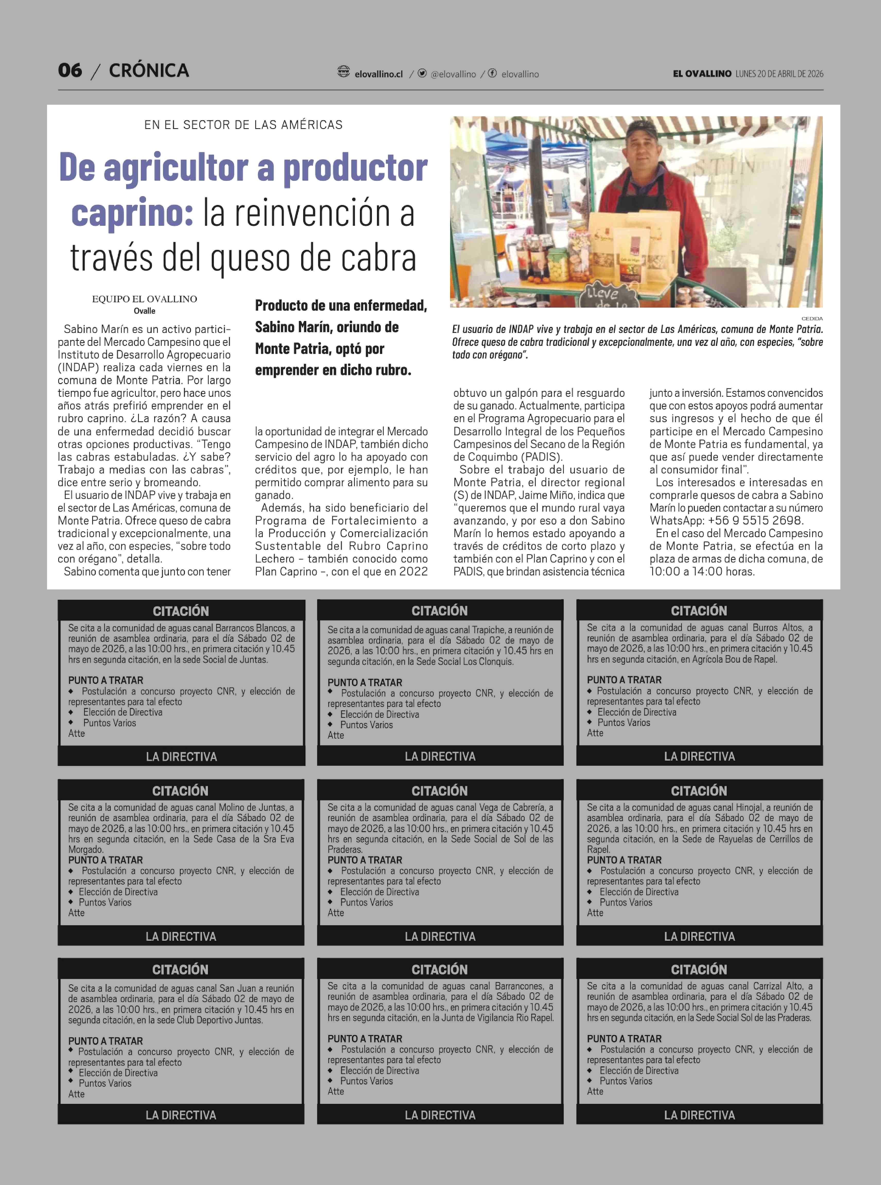De agricultor a productor caprino: la reinvención a través del queso de cabra 20-04-2026 El Ovallino |