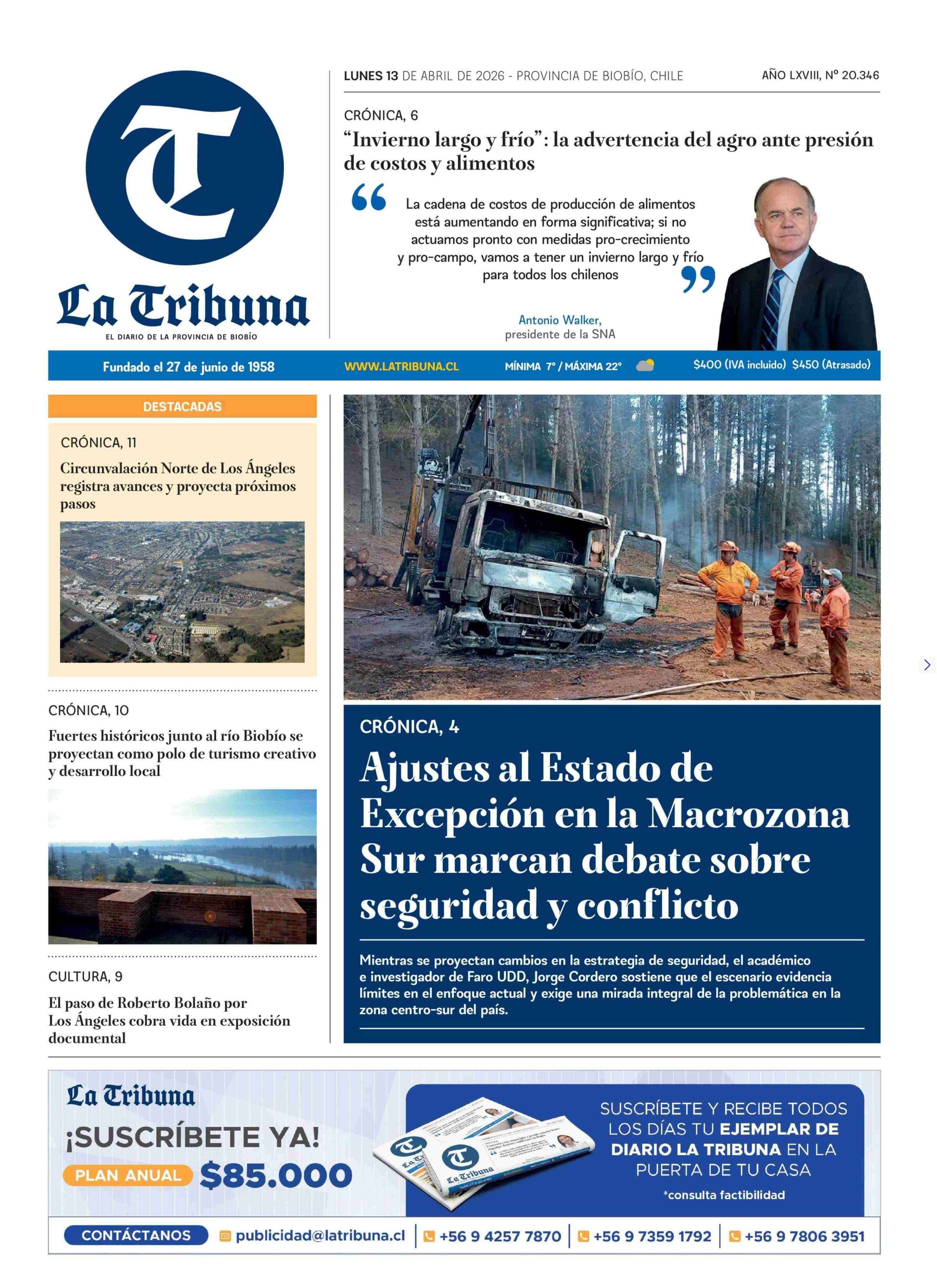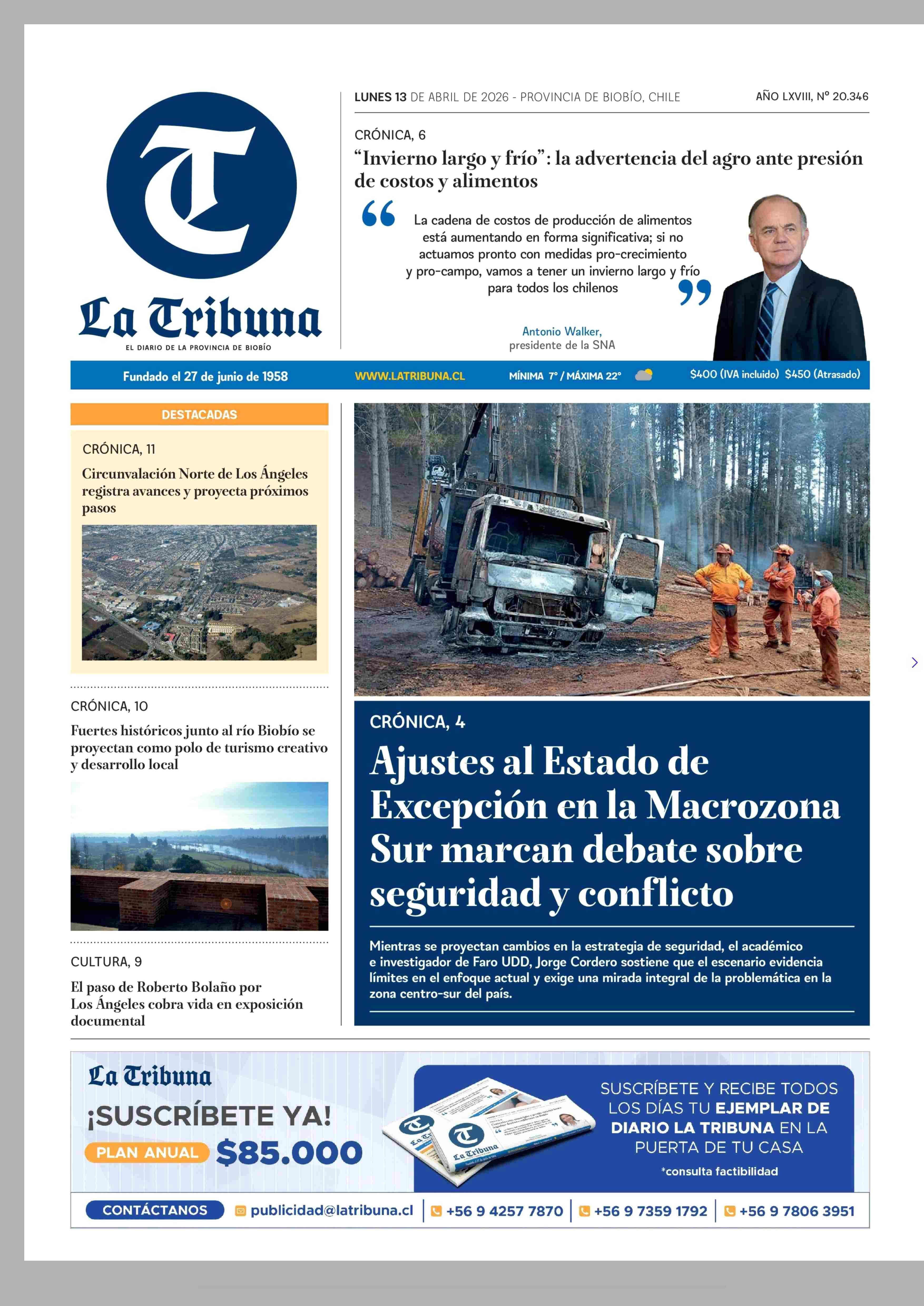 PORTADA LA TRIBUNA - CHILE 13-04-2026 La Tribuna |
